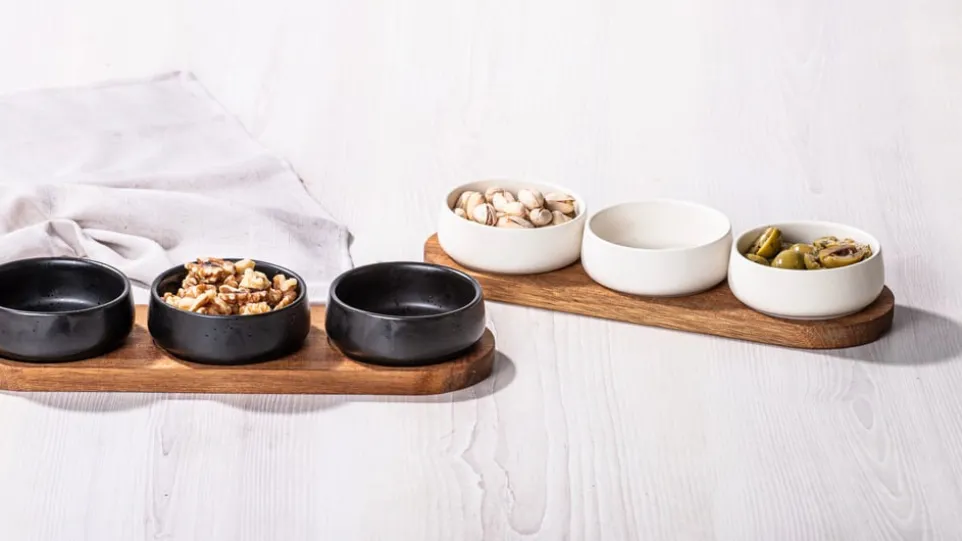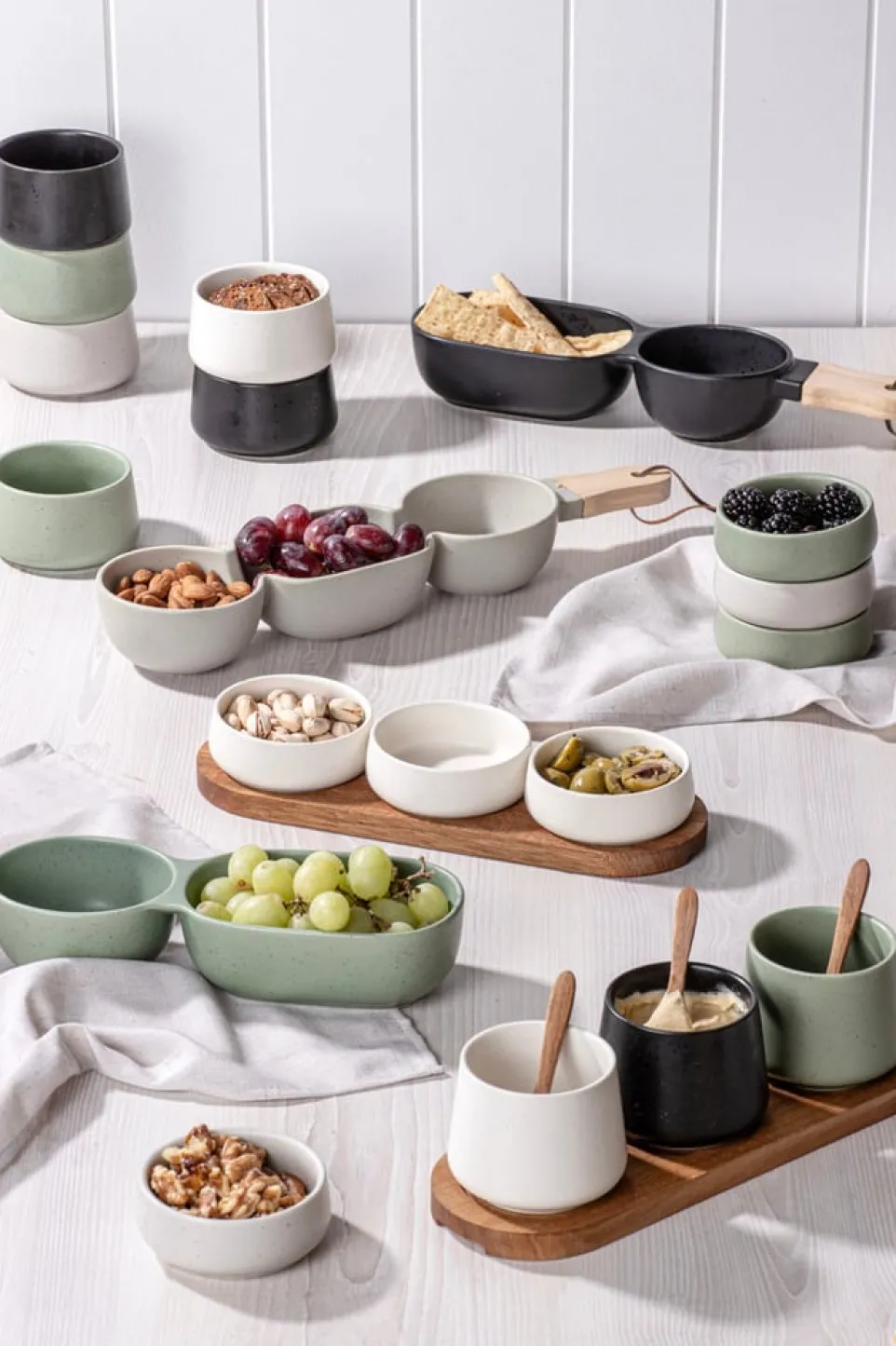 Mit dem Apéro-Schalen-Set Elements von LADELLE bringst du stilvolle Eleganz auf deinen Tisch. Die Kombination aus Steinzeug und Akazienholz verleiht deinem Zuhause einen Hauch von Raffinesse. Dank der Spülmaschinen- und Gefrierfachtauglichkeit sind die Schalen äusserst praktisch und pflegeleicht. Ob bei einem Dinner mit Freunden oder einem gemütlichen Abend allein, dieses Set ergänzt jede Gelegenheit perfekt. Die klassische Form und das matte Design machen es zu einem vielseitigen Begleiter für dein kulinarisches Erlebnis. Erlebe die hochwertige Verarbeitung und das durchdachte Design, die deinen Alltag bereichern.