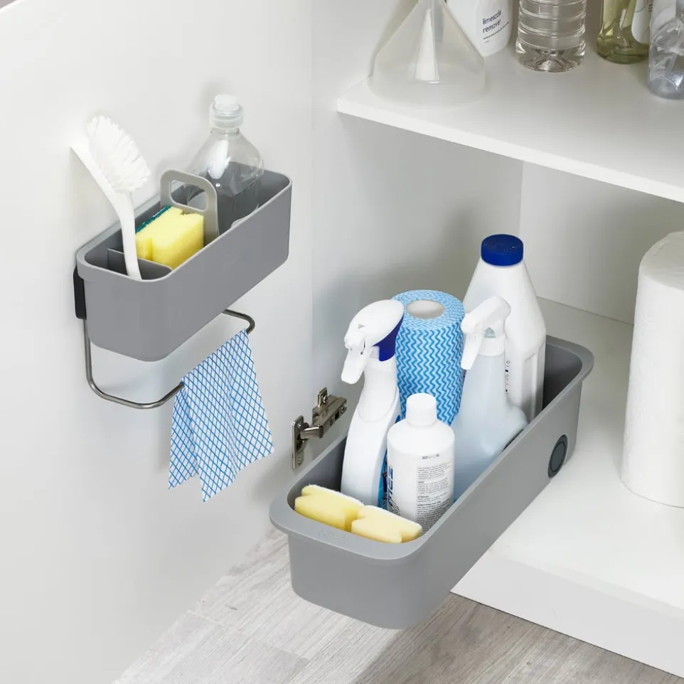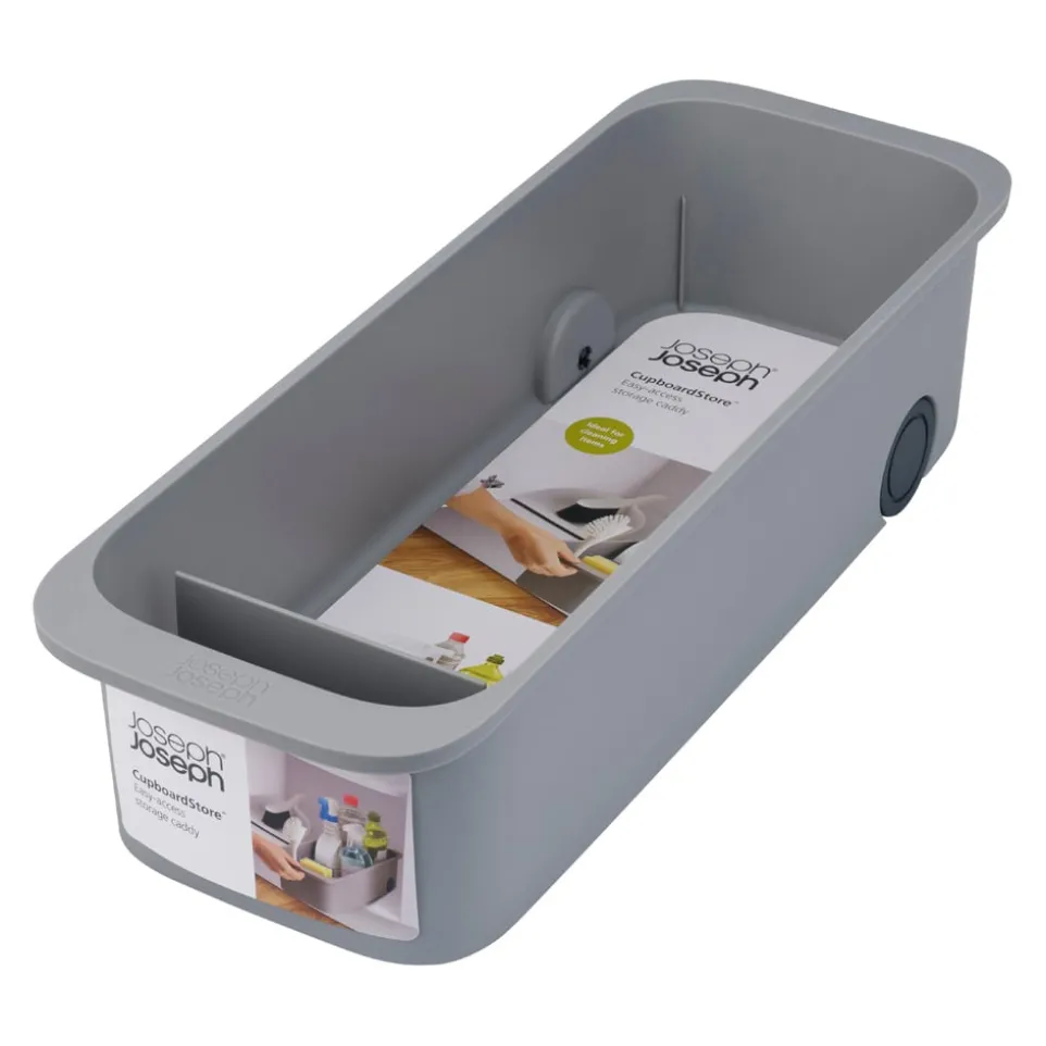 Mit der Aufbewahrungsbox Cupboardstore von Joseph Joseph hältst du deine Reinigungsutensilien stets griffbereit. Die clevere Konstruktion aus robustem Polypropylen bietet ein grosses Hauptfach für Flaschen, Aerosole und Sprühreiniger sowie ein kleineres Frontfach für Schwämme und Tücher. Eine einfach zu greifende Frontlippe und leichtlaufende Rollen ermöglichen es dir, den Caddy mühelos aus dem Schrank zu ziehen. Diese praktische Lösung hilft dir, Ordnung in dein Putzschrank zu bringen und sorgt dafür, dass alle Reinigungsartikel an ihrem Platz bleiben. Pflegeleicht und funktional ist dieser Caddy eine Bereicherung für jeden Haushalt.