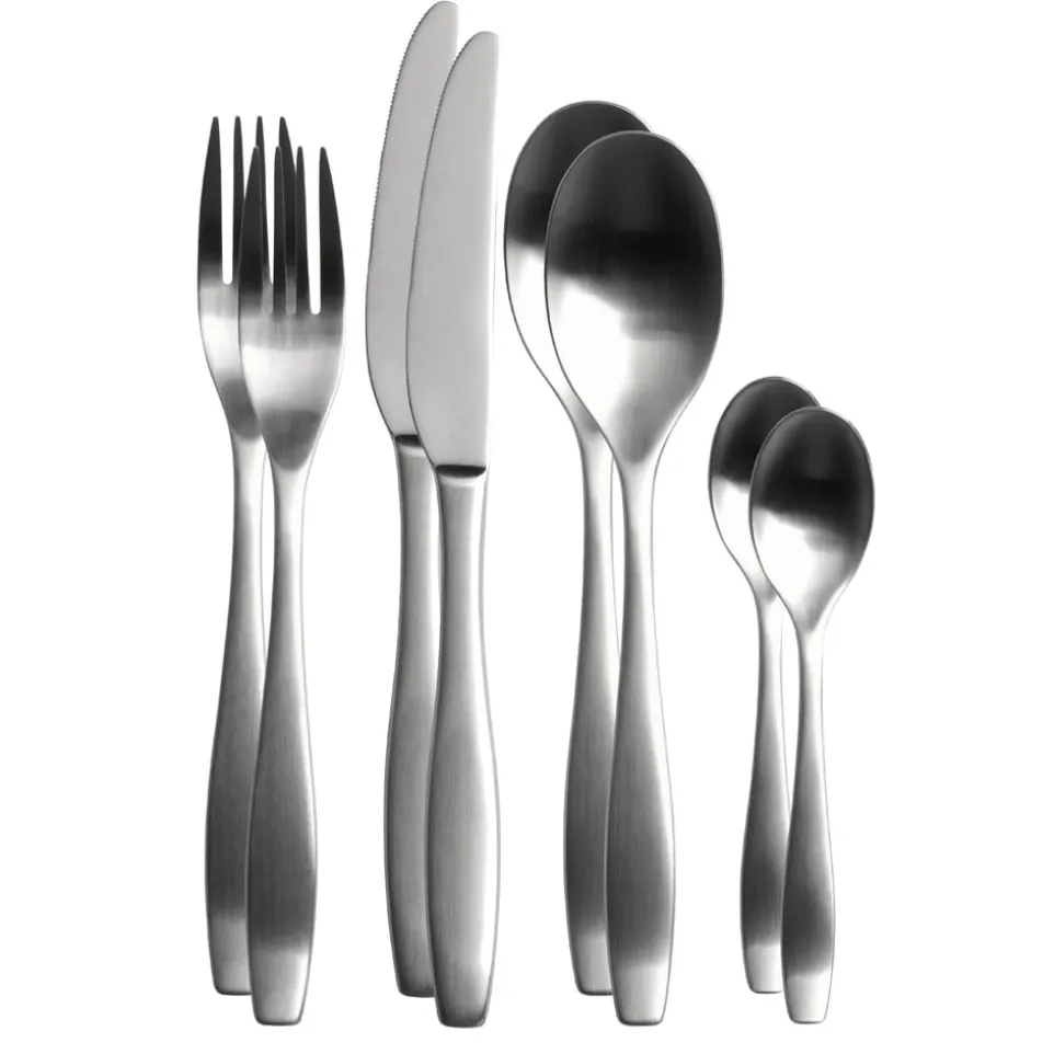Toll in Form. ILLNAU besticht durch sein schlichtes und gleichermassen verspieltes Design. Die runde, weiche Formgebung macht das Besteckset zum idealen Tischbegleiter für jede Gelegenheit. Aus Chromnickelstahl matt. 8-teilig, bestehend aus je 2 Messer, 2 Gabeln, 2 Suppenlöffel und 2 Dessertlöffel. Design by Alfredo Häberli. Ein Stück aus der Schweizer Designkollektion Atelier Pfister.