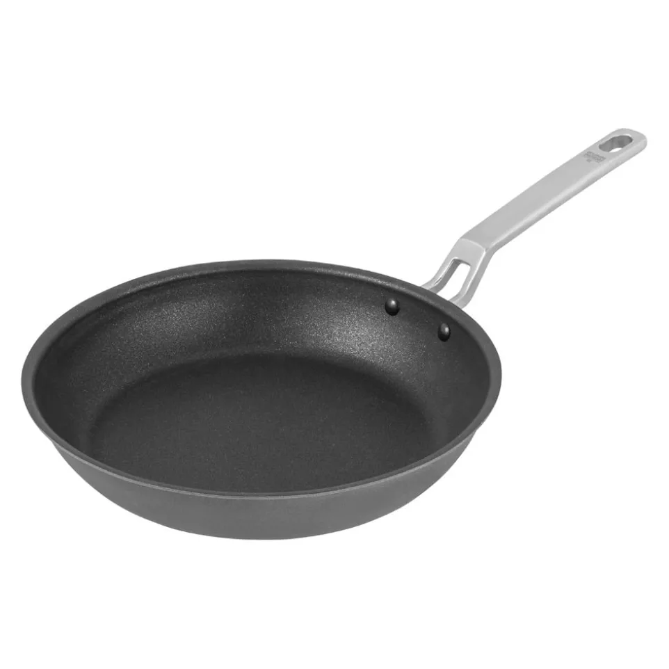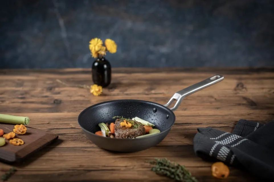 Die NEW LIFE® PRO Bratpfanne von Kuhn Rikon beeindruckt mit ihrem dicken Boden, der eine optimale Wärmeverteilung sicherstellt. Gefertigt aus 100 % recyceltem Aluminium, ist sie umweltfreundlich und bietet dank einer keramisch verstärkten 3-lagigen Antihaftbeschichtung langlebige Qualität. Der ergonomische Edelstahlstiel bleibt kühl und sorgt für eine angenehme Handhabung. Diese Bratpfanne ist für alle Herdarten geeignet und bis 240°C backofentauglich. Pflegeleicht und spülmaschinengeeignet, spart sie Zeit und Wasser. Mit einer Verpackung aus 100 % Recycling-Papier unterstützt sie nachhaltiges Kochen. Hergestellt in der Schweiz.