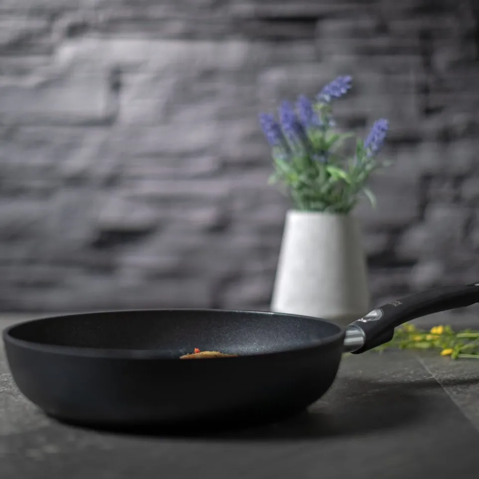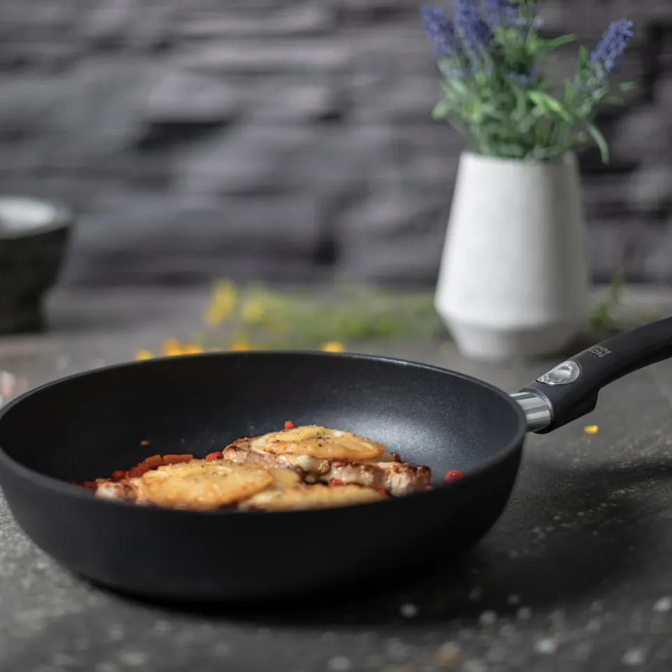 Die Bratpfanne TITANIO STAR ist ein echter Alleskönner. Die Antihaft-Titanbeschichtung besteht aus drei Lagen und macht diese Bratpfanne besonders widerstandsfähig. Ob Fleisch, Poulet, Fisch, Gemüse, Kartoffeln oder Eierspeisen, TITANIO STAR ist für alles zu haben. Weitere Pluspunkte sind die Vollinduktionsfläche und der extradicke Boden. So sind eine gleichmässige Wärmeverteilung beim Braten und ein guter Wärmespeicher garantiert. Die Bratpfanne eignet sich für alle Herdarten, ist backofentauglich bis 180° C und spülmaschinenfest. Die PTFE-Beschichtung ist PFOA-frei. Ein Qualitätsprodukt von Kuhn Rikon.