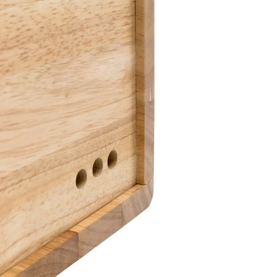 Ein wahres Naturprodukt: Der Brotkasten Bread von Continenta besteht aus massivem Gummibaumholz. Dieses hochwertige Material verleiht deinem Küchenaccessoire Langlebigkeit und natürliche Schönheit. Die platzsparende Form macht den Brotkasten ideal für jede Küche, während die Klappe zusätzlich als praktisches Schneidebrett dient. Dank der optimalen Belüftung bleibt dein Brot länger frisch, selbst grosse Brote finden hier ihren Platz. Pflegeleicht in der Handhabung, sollte das Holz nur feucht abgewischt und stehend getrocknet werden. Achte jedoch darauf, dass es nicht zu intensiver Feuchtigkeit oder grossen Temperaturunterschieden ausgesetzt wird, um Verformungen zu vermeiden.
