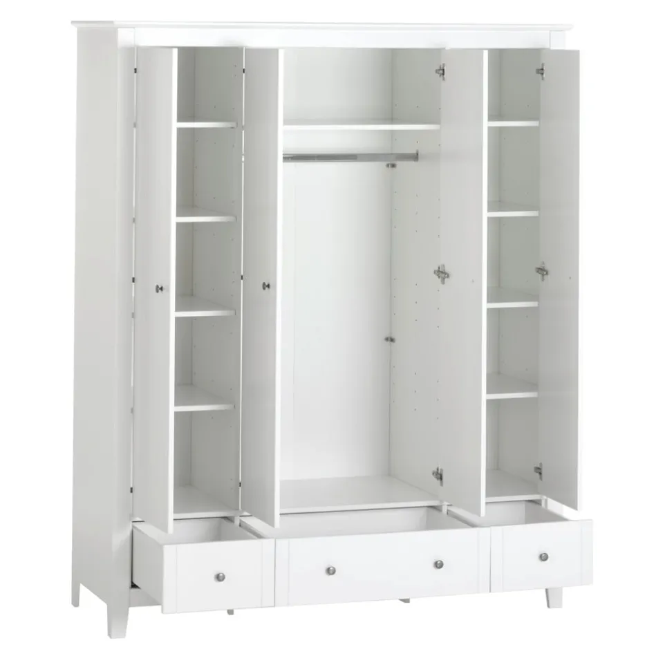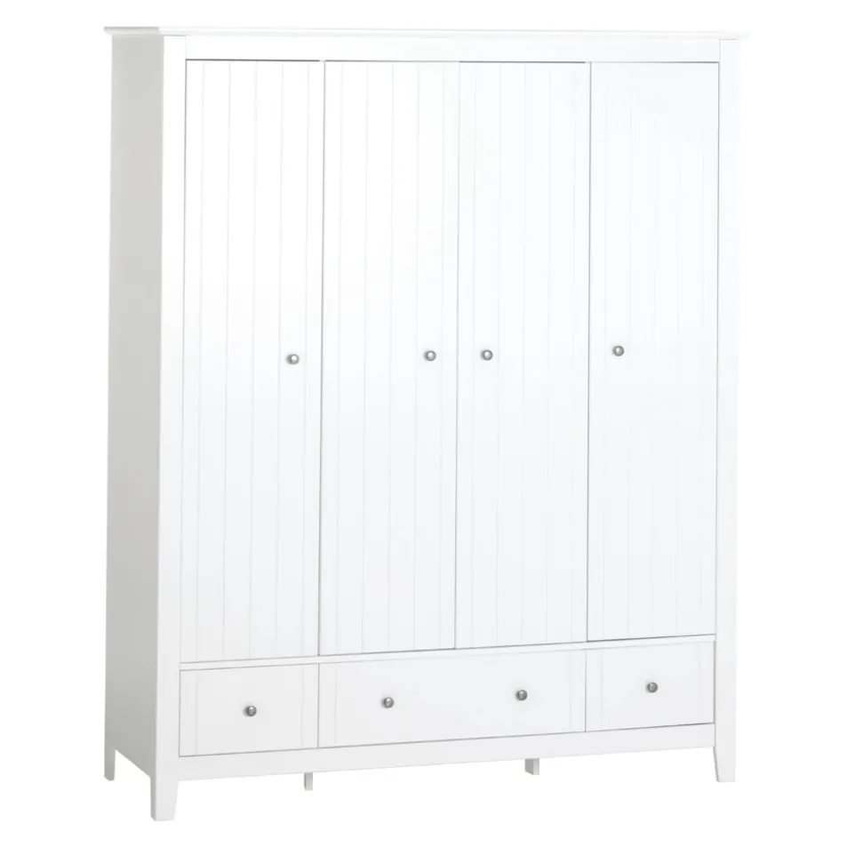 Sie mögen den nordischen Landhausstil? Dann werden Sie den Schrank MANOSQUE lieben. Der weiss lackierte Schrank mit 4 Türen hat so einiges an Innenleben zu bieten. Rechts und links je 5 Nischen, in der Mitte viel Raum inkl. Tablar und Kleiderstange, im unteren Bereich 3 Schubladen. Das lässt sich sehen! Der Schrank ist in diversen Ausführungen erhältlich.