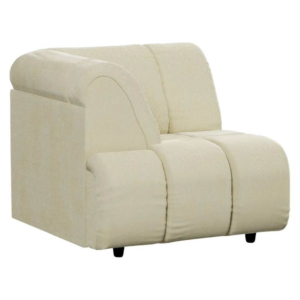 Das Eckelement Wave von HKliving lädt mit seiner komfortablen Kord-Textur zum Entspannen ein. Ein elegantes Design vereint mit hochwertigem Textilmaterial sorgt für ein stilvolles Ambiente in deinem Wohnraum. Kord als Textilart verleiht dem Möbelstück nicht nur eine ansprechende Optik, sondern auch eine angenehme Haptik. Die grosszügige Polsterung bietet optimalen Sitzkomfort und passt sich deinen Bedürfnissen an. Ob als Solitär oder in Kombination mit anderen Elementen – das Eckelement Wave schafft eine einladende Atmosphäre. Ideal für gemütliche Abende und gesellige Runden mit Freunden und Familie.