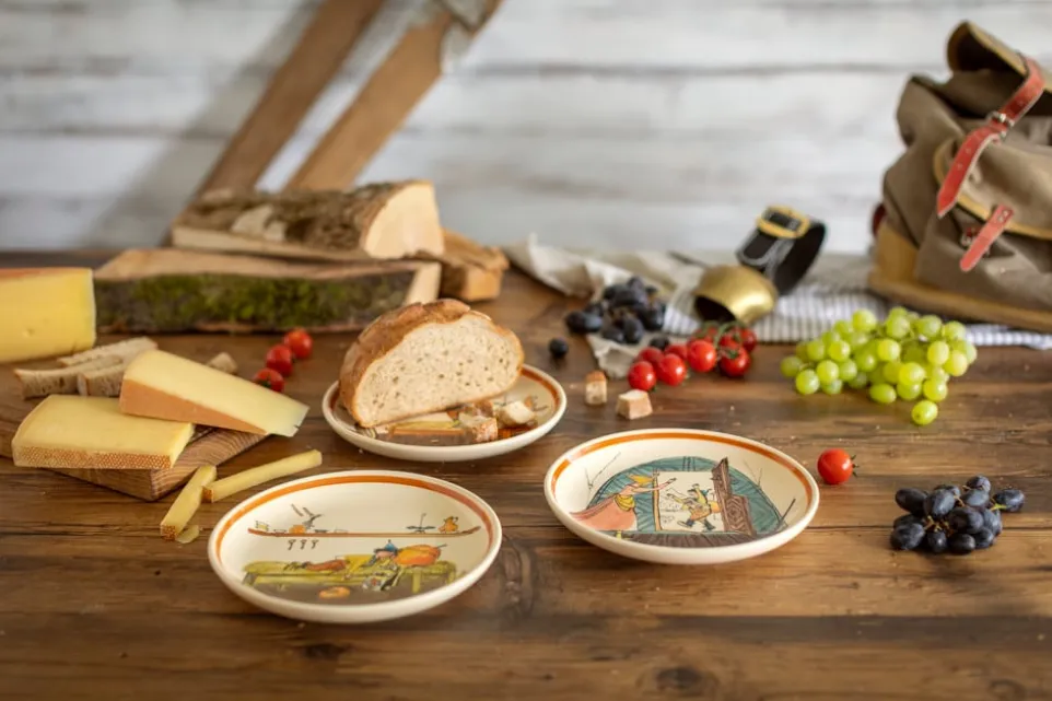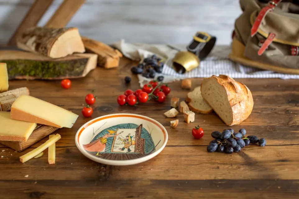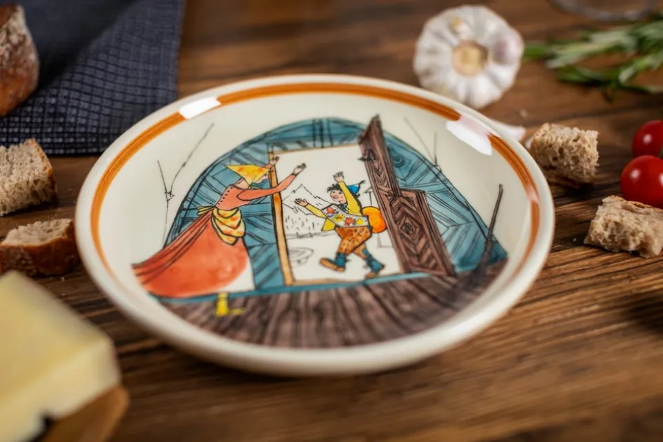 Schellenursli hätte seine wahre Freude an diesem Keramikgeschirr. Jedes Stück ist mit einem Motiv seines Schöpfers Alois Carigiet handbemalt und ein Unikat. In unserem Online-Shop finden Sie verschiedene Schalen, Teller und Tassen sowie ein Fondue-Caquelon. Nicht geeignet für die Spülmaschine oder Mikrowelle.