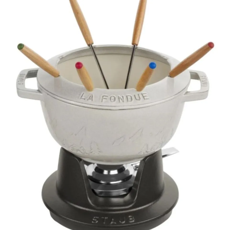 Das Fondue-Set Queso von Staub besticht durch sein robustes Eisenmaterial. Geniesse gesellige Abende mit Freunden und Familie, während du köstliches Fondue zubereitest. Eisen ist bekannt für seine hervorragende Wärmespeicherung und gleichmässige Wärmeverteilung, was dieses Set ideal für das Schmelzen von Käse und Schokolade macht. Die Marke Staub steht für Qualität und Langlebigkeit, sodass du lange Freude an deinem Fondue-Set haben wirst. Ein Fondue-Set aus Eisen ist die perfekte Wahl für alle, die sowohl Funktionalität als auch eine ansprechende Tischpräsentation schätzen. Entdecke die Kunst des Fondues mit Staub.