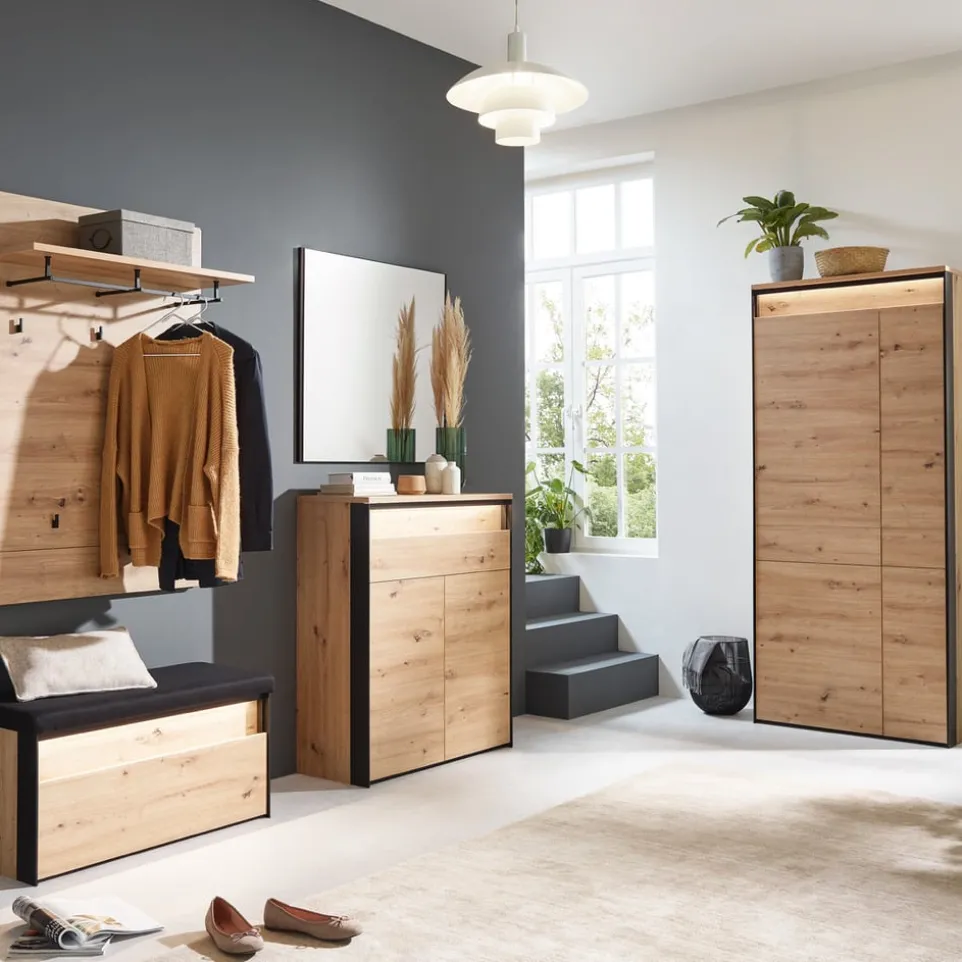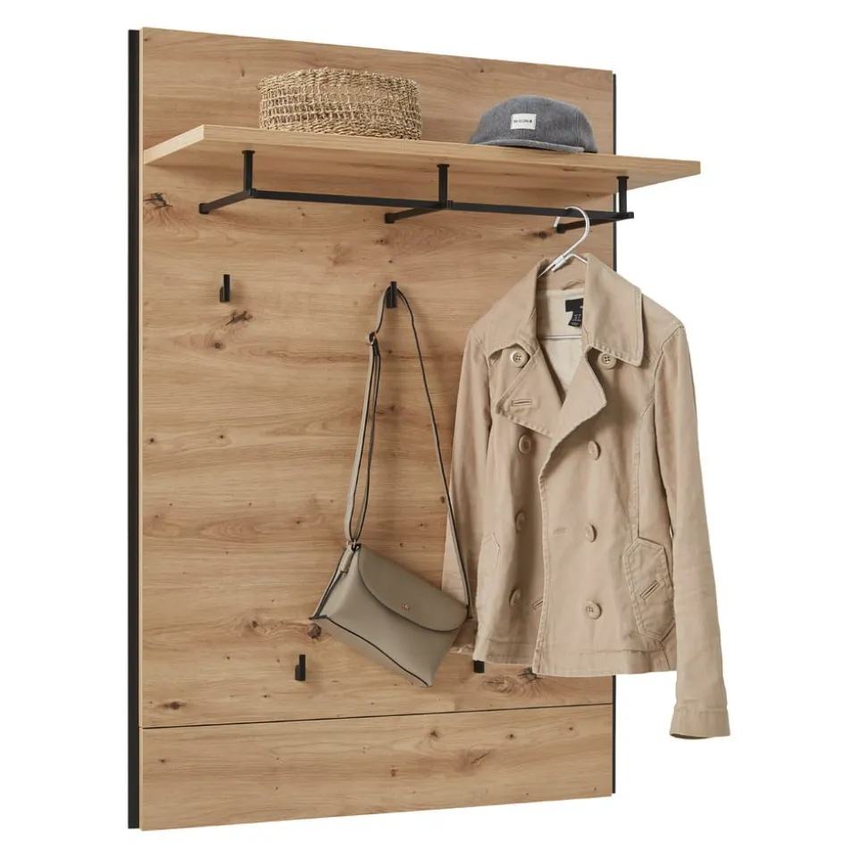Das Garderobenpaneel Edra von Voleo bietet eine stilvolle Lösung für dein Zuhause. Dank des hochwertigen Holzwerkstoffs und der robusten Flachpressplatte ist dieses Paneel besonders langlebig. Es verfügt über ein praktisches Tablar mit Kleiderstange, das dir zusätzlichen Platz für deine Kleidung bietet. Die Kombination aus moderner Gestaltung und funktionalem Design macht das Garderobenpaneel Edra zu einem unverzichtbaren Element in jedem Eingangsbereich. Mit Voleo entscheidest du dich für Qualität und Eleganz in deinem Zuhause. Lass dich von der hervorragenden Verarbeitung und dem ansprechenden Design überzeugen.