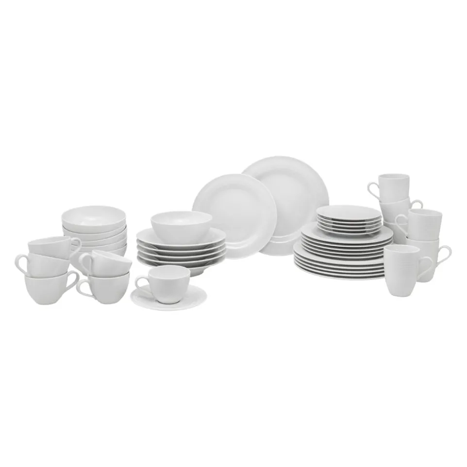 Tafelset BEAT der Qualitätsmarke Seltmann präsentiert sich schnörkellos und ist somit eine ideale Basis für den Alltag. Das 42-teilige Geschirrset umfasst je 6 Speiseteller, Dessert/Frühstücksteller, Suppenteller und Allzweckschalen aus Porzellan. Dazu gibt es 12 Kaffeetassen und 6 Unterteller.