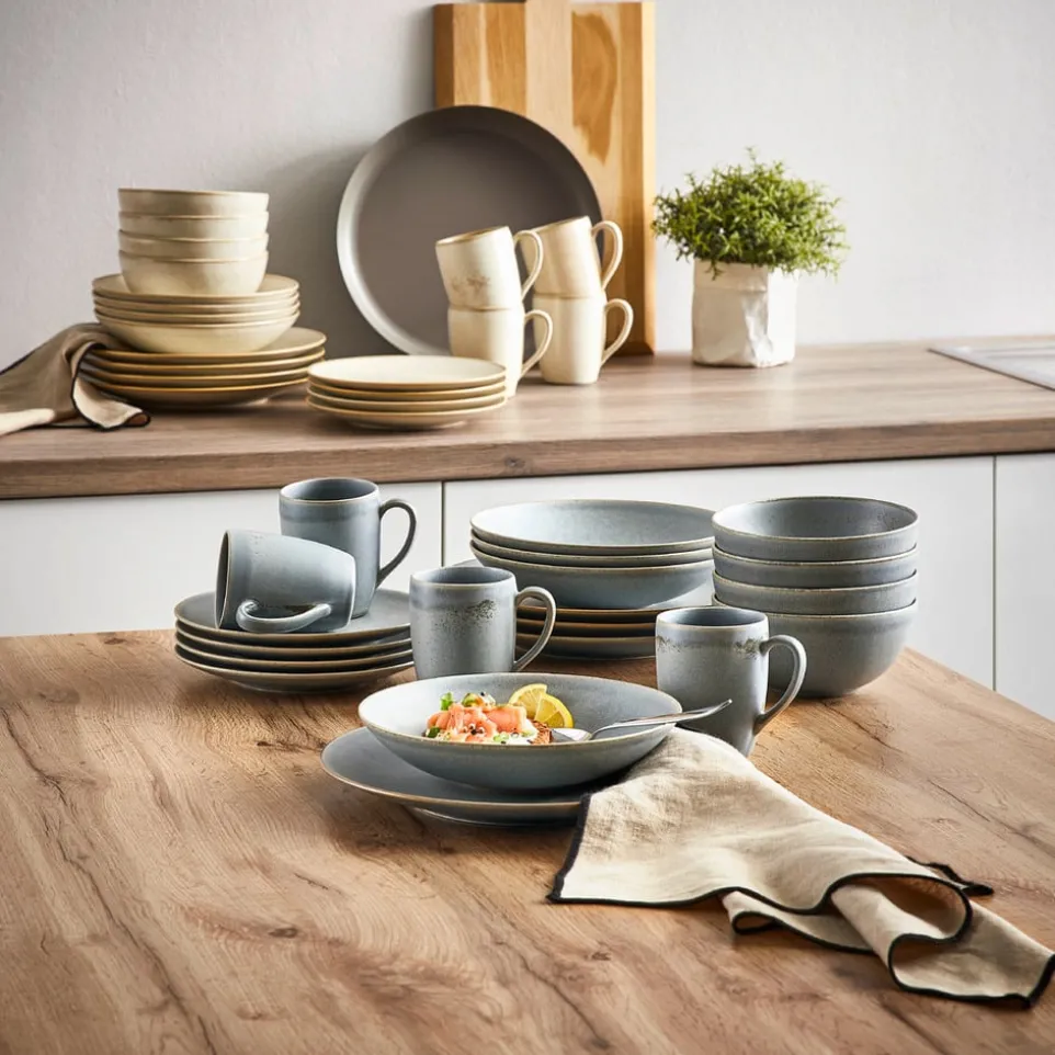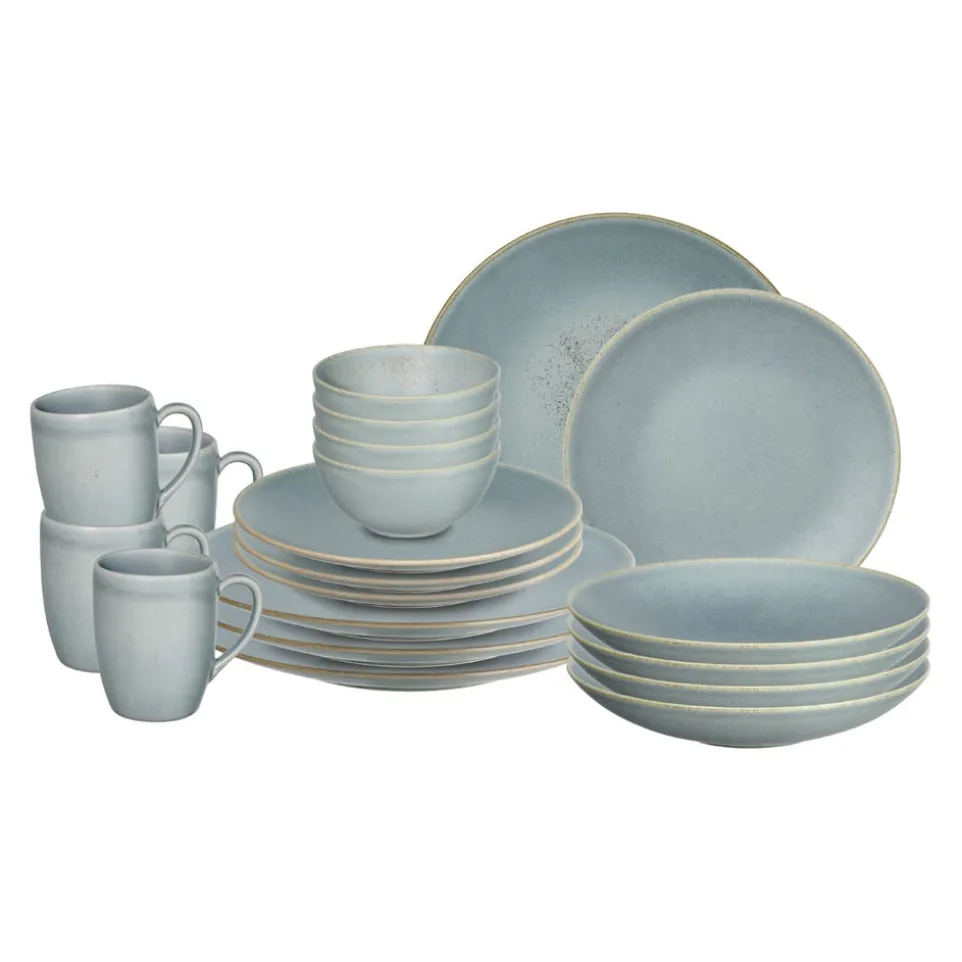 Spülmaschinenfest und mikrowellengeeignet, das Geschirrset Cafe Del Mar von ASA Selection bietet dir praktische Alltagstauglichkeit. Hergestellt aus robustem Steinzeug, ist das Set zudem gefrierfachgeeignet. Mit 20 Teilen ausgestattet, umfasst es je vier Essteller, Dessertteller, Suppenteller, Henkelbecher und Schalen. Verpackt in einem attraktiven Set-Karton, eignet es sich auch wunderbar als Geschenk. Die verschiedenen Tellergrössen und Schalen sorgen für Flexibilität bei der Tischgestaltung. Ob für ein gemütliches Frühstück oder ein festliches Abendessen, mit diesem Geschirrset bist du bestens gerüstet. Ein vielseitiges Set für den modernen Haushalt.