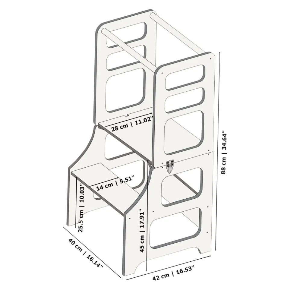 weitere Angaben | Küchenturm umwandelbar in Stuhl, Hocker oder Tisch |