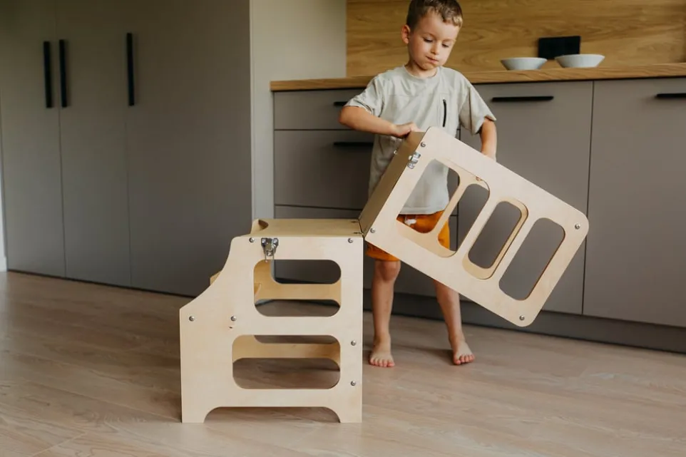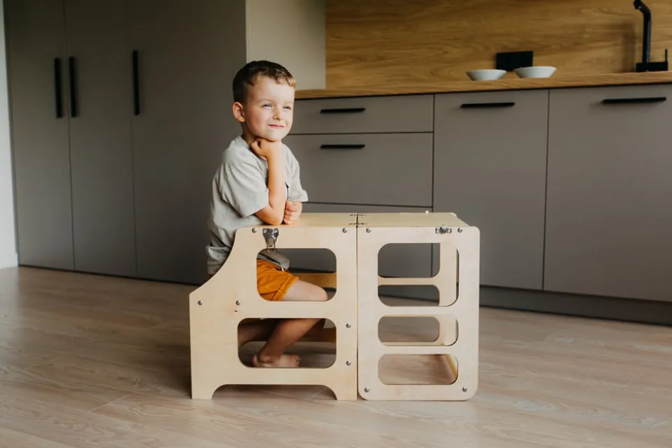 Vielseitigkeit trifft auf Funktionalität im Hochstuhl Gauja von Duck Woodworks. Dieser innovative Küchenturm lässt sich mühelos in einen Stuhl, Hocker oder Tisch verwandeln und passt sich so deinen Bedürfnissen an. Gefertigt aus hochwertigem Birkenholzwerkstoff, bietet er eine robuste und langlebige Lösung für verschiedene Alltagssituationen. Die natürliche Holzoptik fügt sich nahtlos in jede Küche oder Wohnumgebung ein und sorgt für eine angenehme Atmosphäre. Egal ob du ihn als Hochstuhl für die Kleinen oder als praktischen Tisch nutzen möchtest, der Gauja überzeugt durch seine Wandelbarkeit und Qualität. Ideal für alle, die Flexibilität schätzen.