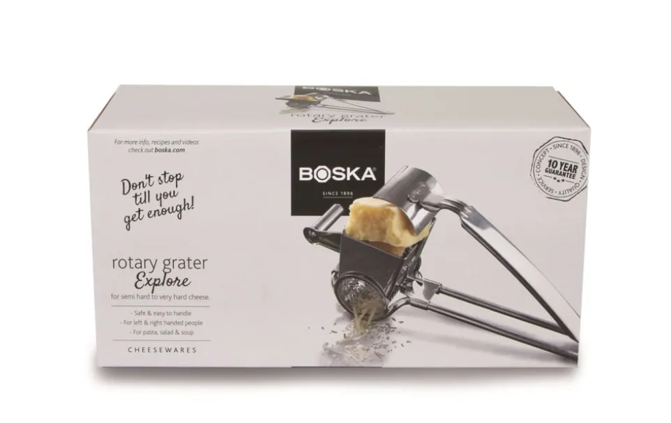 Stilvolle Funktionalität für deine Küche bietet die Käsereibe Monaco + von BOSKA. Aus hochwertigem Edelstahl gefertigt, überzeugt sie durch Langlebigkeit und Robustheit. Diese Käsereibe ist ideal, um Hartkäse mühelos in feine Flocken zu verwandeln und deinen Gerichten den letzten Schliff zu verleihen. Das durchdachte Design sorgt für eine komfortable Handhabung und macht die Reinigung einfach. Ob du ein passionierter Hobbykoch bist oder einfach nur gerne Käse geniesst, die Käsereibe von BOSKA ergänzt jede Küche perfekt. Ein unverzichtbares Küchenzubehör für alle, die Qualität und Stil schätzen.