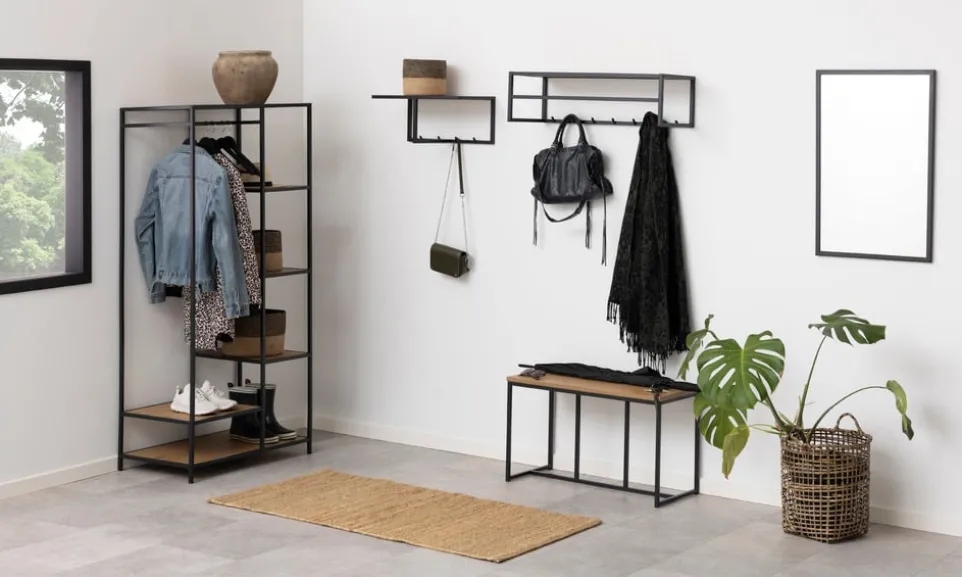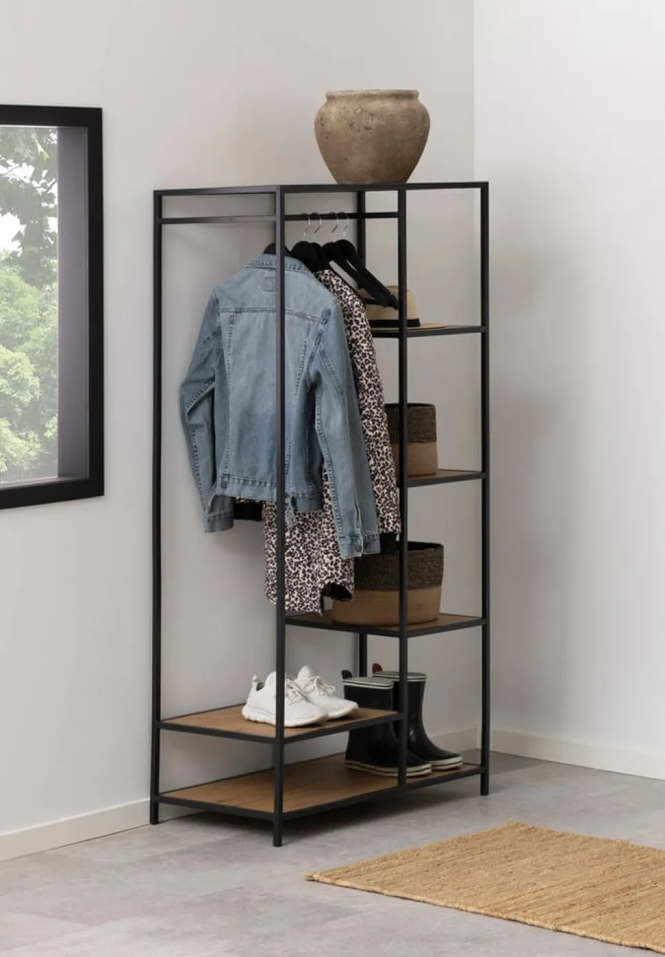 Der Kleiderständer Seaford bietet mit fünf grosszügigen Ablagen aus robustem Stahl reichlich Platz für deine Kleidung und Accessoires. Das pulverbeschichtete Oberflächenfinish verleiht dem Metall eine elegante Widerstandsfähigkeit und schützt es vor Kratzern und Abnutzung. Die stabile Konstruktion aus hochwertigem Stahl sorgt für Langlebigkeit und Zuverlässigkeit, während das minimalistische Design sich nahtlos in jede Wohnumgebung einfügt. Ob im Schlafzimmer, Flur oder Ankleidezimmer – der Seaford Kleiderständer von MID.YOU ist eine stilvolle und praktische Ergänzung für dein Zuhause, die Ordnung und Übersichtlichkeit schafft.