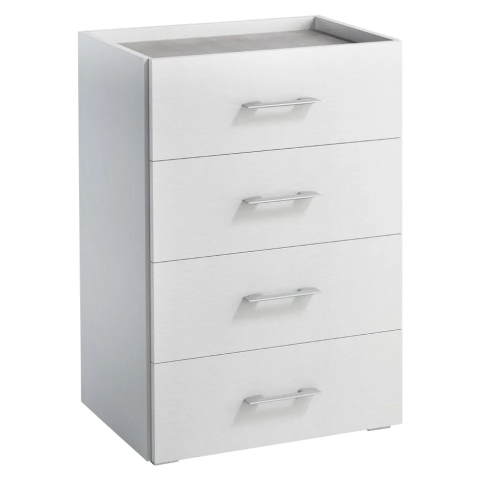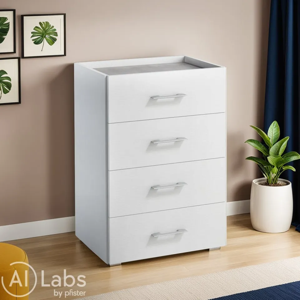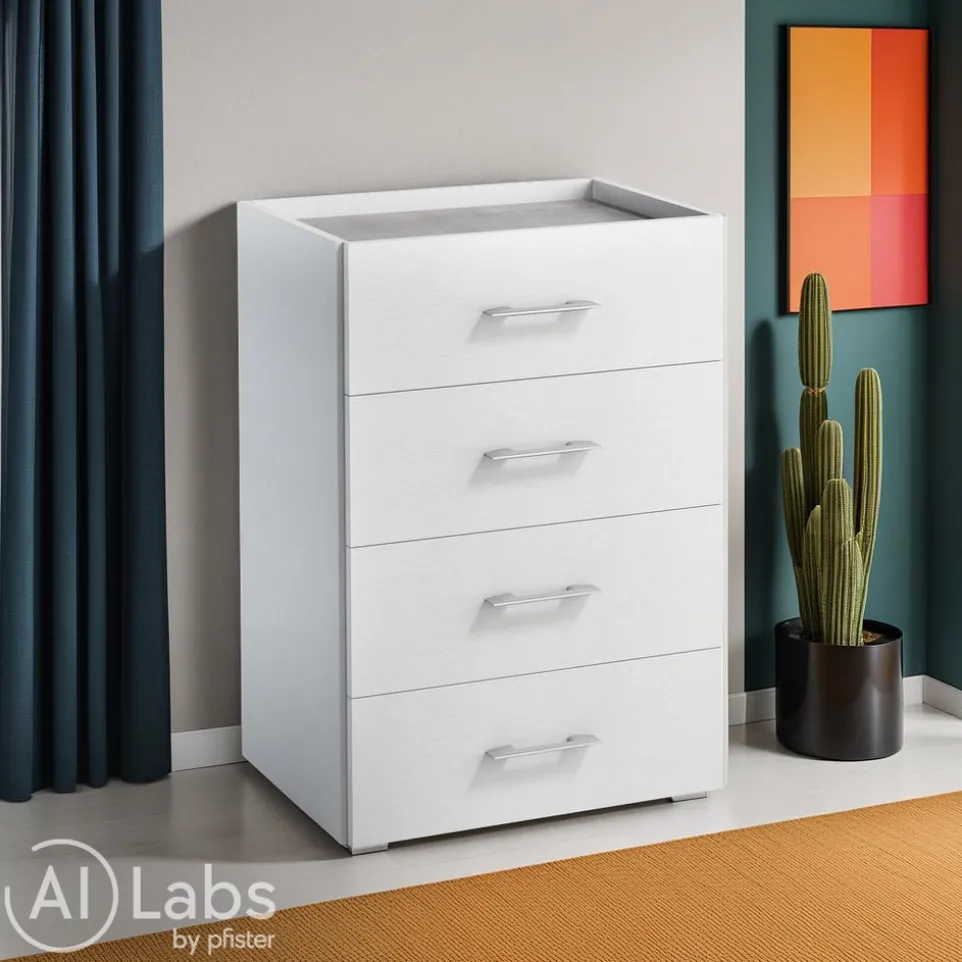 Schaffe Ordnung mit der stilvollen Kommode Living von Sikelia. Diese elegante Kommode aus hochwertigem Holzwerkstoff und robuster Spanplatte bietet dir vier geräumige Schubladen für deine Habseligkeiten. Dank des FSC®-Mix-Zertifikats kannst du sicher sein, dass das Material aus verantwortungsvoller Waldwirtschaft stammt. Die Kommode Living vereint Funktionalität und Design und passt perfekt in jedes Zimmer. Ob im Schlafzimmer, Wohnzimmer oder Flur – diese Kommode ist vielseitig einsetzbar und bringt Struktur in dein Zuhause. Vertraue auf die Qualität und den Stil von Sikelia und gestalte deinen Wohnraum mit dieser zeitlosen Kommode.