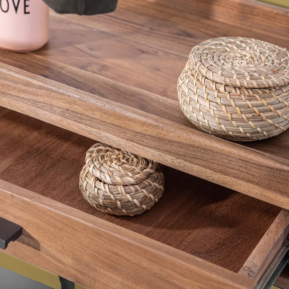 Jedes Stück ist ein Unikat, daher sind Abweichungen in Struktur und Farbe möglich. Gebrauchsspuren und Rissbildungen im Holz stellen keine Mängel dar, sondern sind gewollte Eigenschaften, die den individuellen Charakter des Möbels unterstreichen.