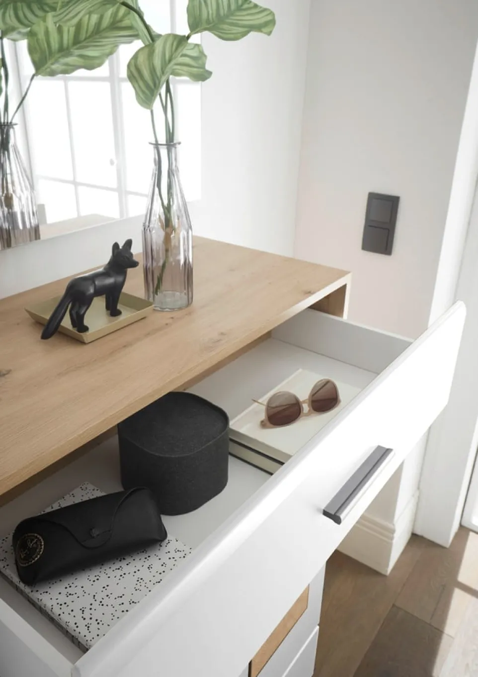 Die Kompaktgarderobe Georgia von Carry Home besticht durch ihre praktische und platzsparende Bauweise. Hergestellt aus robustem Holzwerkstoff, bietet sie eine langlebige Lösung für deinen Eingangsbereich. Die Flachpressplatte sorgt für eine hochwertige und stabile Konstruktion, die deinem Zuhause ein ordentliches und aufgeräumtes Aussehen verleiht. Mit dieser Kompaktgarderobe hast du nicht nur Stauraum für Jacken und Schuhe, sondern auch eine stilvolle Ergänzung für dein Interieur. Die Garderobe Georgia ist die ideale Wahl für alle, die Funktionalität und Design in Einklang bringen möchten.