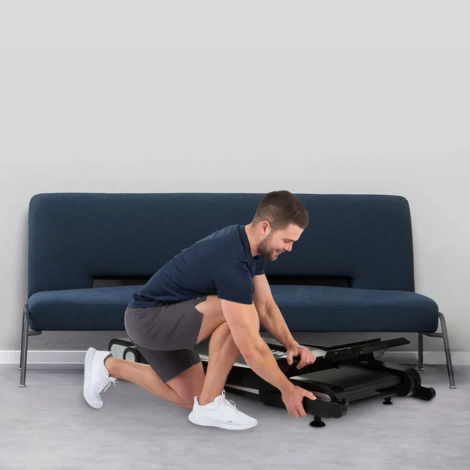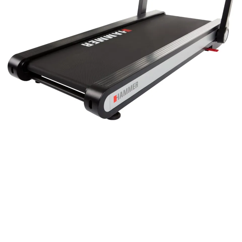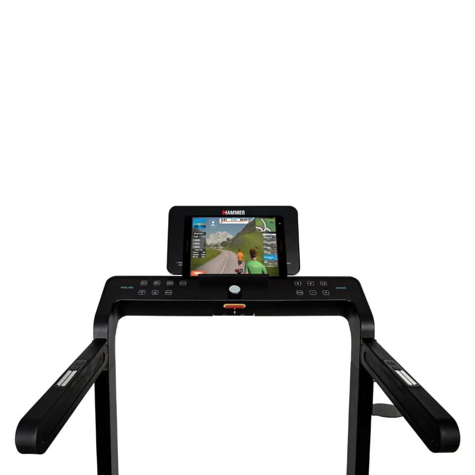 Laufband QVADIS 3.0 ist die perfekte Lösung für alle Laufeinsteiger und Hobbysportler, die fürs Home Gym nur wenig Platz zur Verfügung haben. Dank einer innovativen Klapptechnik lässt es sich platzsparend aufbewahren und ist mit wenigen Handgriffen einsatzbereit. Trotz seiner kompakten Masse verfügt das Laufband über eine komfortable Lauffläche von 48×140 cm sowie einen starken Motor für Geschwindigkeiten bis zu 18 km/h und eine Steigung bis 12%. Die Einstellungen sind über die Schnellwahltasten an den Handgriffen regulierbar. Das gute Dämpfungssystem schont die Gelenke und garantiert einen leisen Betrieb. 12 vorinstallierte Workout-Programme sorgen für manch Runner’s High. Dabei zeigt das Display Strecke, Steigung, Schritte, Kalorien, Puls, Zeit und Geschwindigkeit an. Die Pulsmessung ist über die Handpulssensoren oder einen kompatiblen Brustgurt (nicht inbegriffen) möglich. Via Bluetooth lässt sich der Trainingscomputer zudem mit den Fitnessapps Kinomap und Zwift auf Ihrem Tablet oder Smartphone verbinden. Auf diese Weise können Sie virtuelle Strecken auf der ganzen Welt entdecken. Inkl. Tablethalterung und USB-Anschluss.