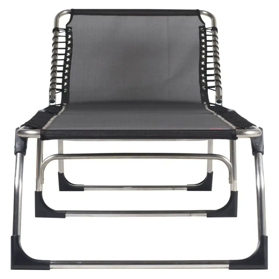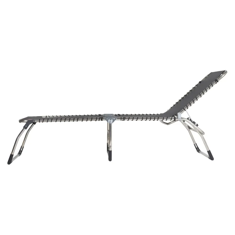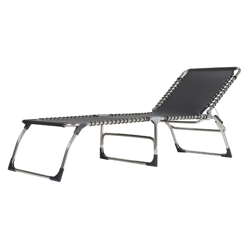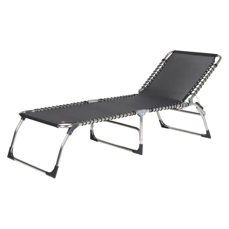 Machen Sie es sich auf diesem extra langen Liegestuhl gemütlich. Er lässt sich einfach zusammenklappen und ist wetterfest.