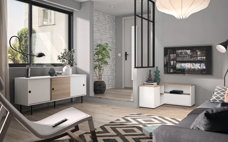 Das Lowboard ANGLE von Temahome besticht durch sein elegantes Design und die hochwertige Verarbeitung aus Spanplatte. Mit einer Tür bietet es ausreichend Stauraum für deine Mediengeräte oder andere Gegenstände. Die stabile Konstruktion und die Form der Beine als Sockel verleihen dem Möbelstück eine moderne und robuste Optik. Hergestellt aus Holzwerkstoff, verbindet es Funktionalität mit stilvollem Aussehen, ideal für dein Wohnzimmer. Das Lowboard ANGLE ist die perfekte Ergänzung für jedes Zuhause, das Wert auf Qualität und Design legt. Hol dir dieses stilvolle Lowboard und erlebe eine neue Art der Wohnkultur.