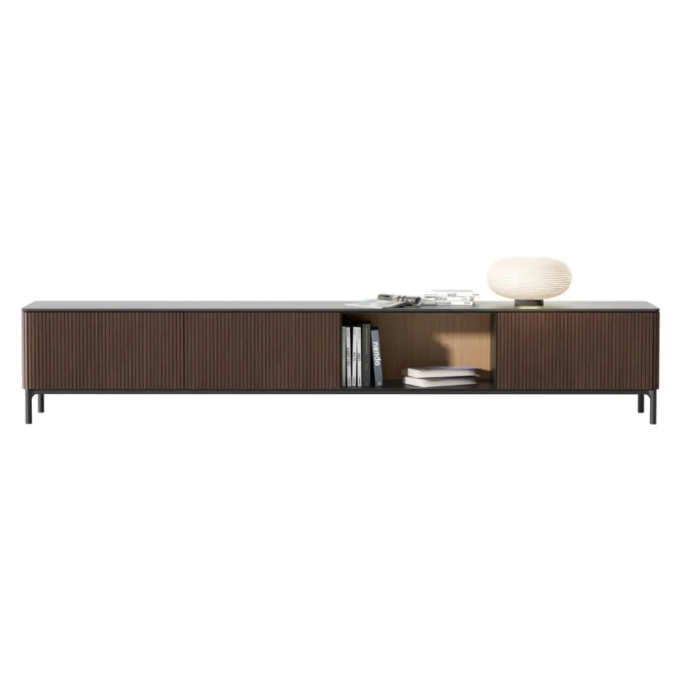 Das Lowboard Ron von Edition beeindruckt durch seine hochwertige Verarbeitung aus furniertem Eichenholz. Dieses elegante Möbelstück vereint die natürliche Schönheit der Eiche mit der Robustheit eines Holzwerkstoffs. Ideal geeignet für dein Wohnzimmer, bietet das Lowboard Ron genügend Stauraum für deine Unterhaltungselektronik und andere persönliche Gegenstände. Die klare Linienführung und das zeitlose Design machen es zu einem Blickfang in jedem Raum. Mit seiner stabilen Konstruktion ist es sowohl funktional als auch ästhetisch ansprechend. Investiere in Qualität und Stil mit dem Lowboard Ron und wertet dein Zuhause stilvoll auf.