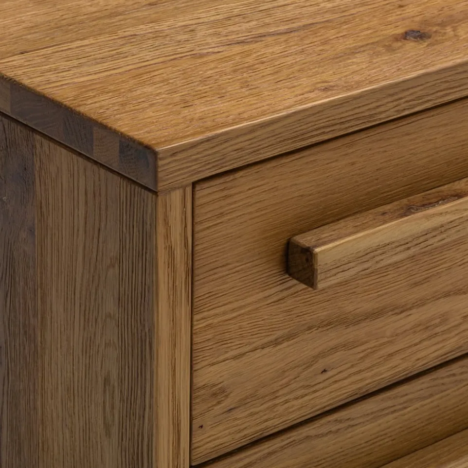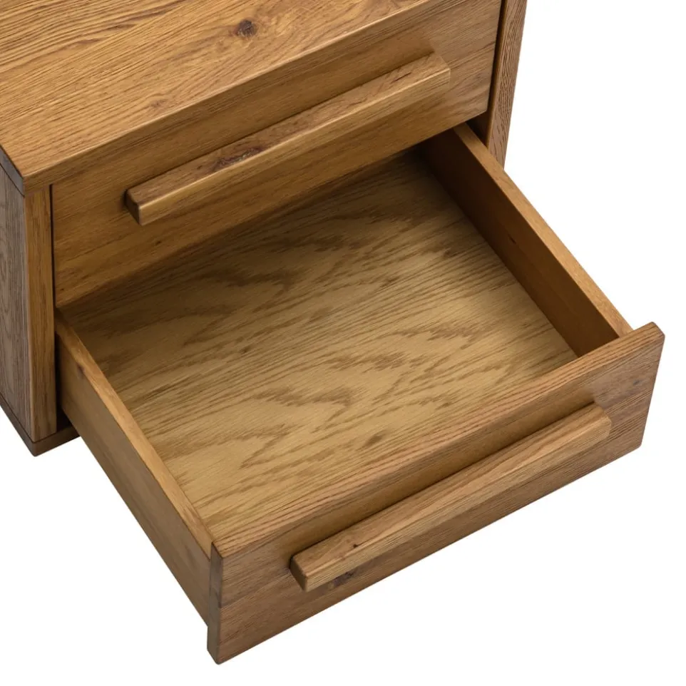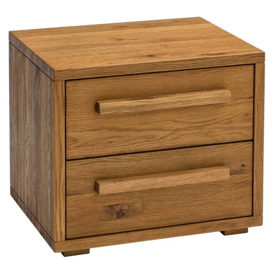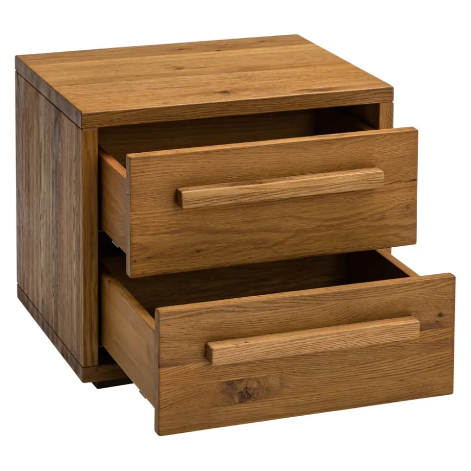 Dieser Nachttisch aus massiver Wildeiche besticht durch seine natürliche Eleganz und robuste Bauweise. Der Alpinchic Nachttisch von HASENA bietet mit seinen zwei Schubladen ausreichend Stauraum für all deine wichtigen Utensilien. Die hochwertige Verarbeitung und das zeitlose Design machen ihn zu einem Highlight in jedem Schlafzimmer. Die klare Linienführung und die edle Holzstruktur unterstreichen den rustikalen Charme dieses Möbelstücks. Hole dir mit dem Nachttisch Alpinchic ein Stück Natur in dein Zuhause und profitiere von der langlebigen Qualität der Marke HASENA. Ideal für alle, die Wert auf stilvolle und funktionale Einrichtung legen.