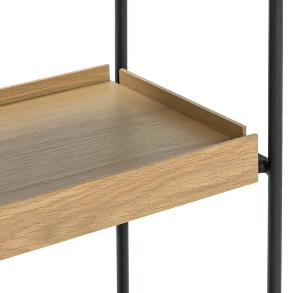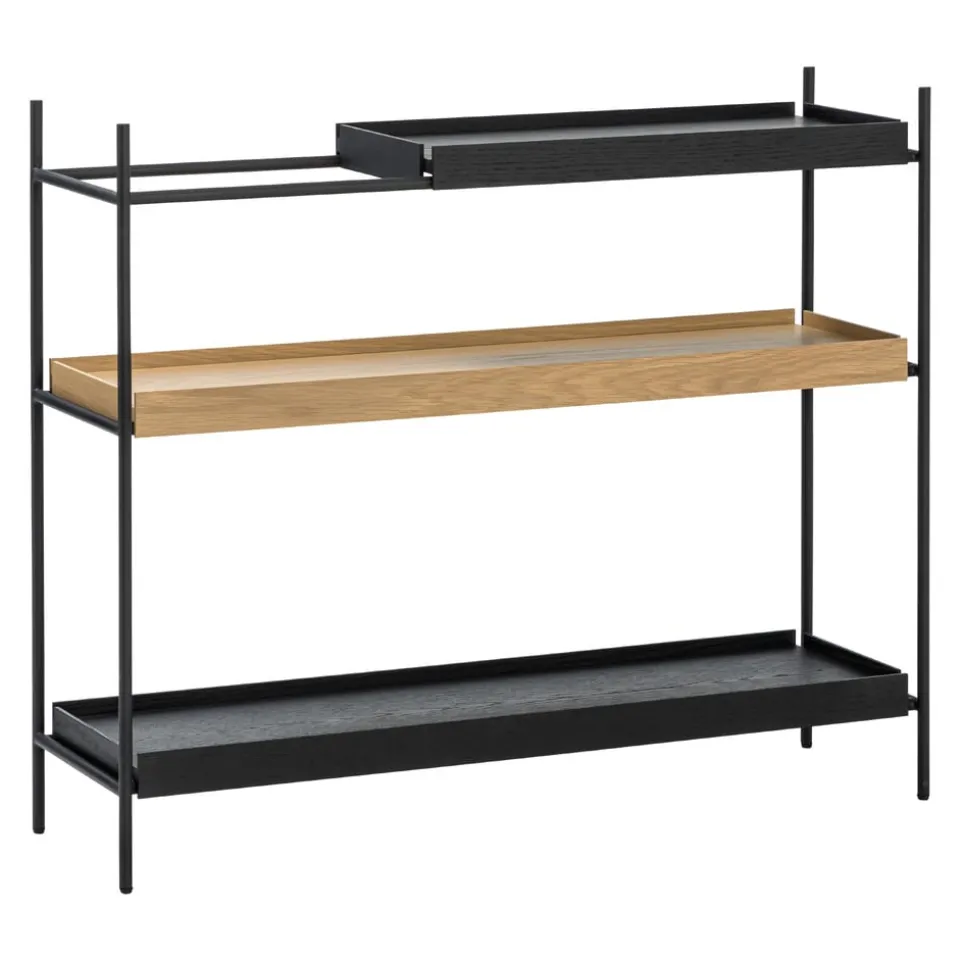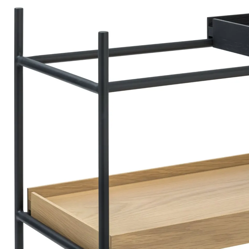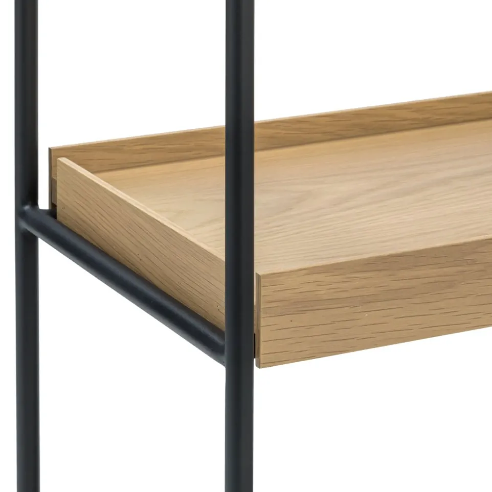 Das Regal Alfa von Johann Jakob beeindruckt durch seine hochwertige Eichenfurnierung und das matte Oberflächenfinish. Die Kombination aus furniertem Eichenholz und robustem Metall verleiht dem Regal eine ansprechende und moderne Optik. Mit drei grosszügigen Ablagen bietet es ausreichend Platz für Bücher, Deko-Artikel oder andere persönliche Gegenstände. Das Regal Alfa ist nicht nur funktional, sondern auch ein stilvolles Möbelstück, das sich in jede Wohnumgebung nahtlos einfügt. Die sorgfältige Verarbeitung und die Verwendung von hochwertigen Materialien unterstreichen die Qualität der Marke Johann Jakob.