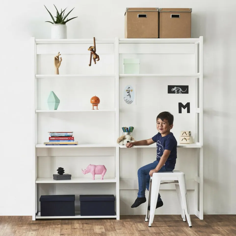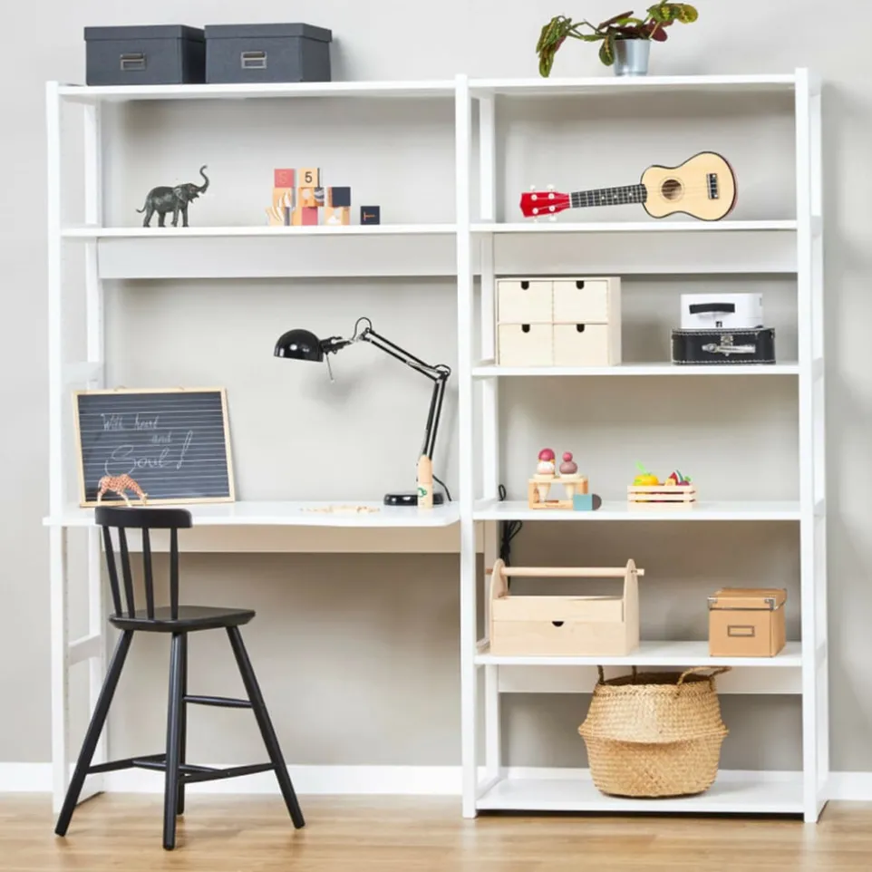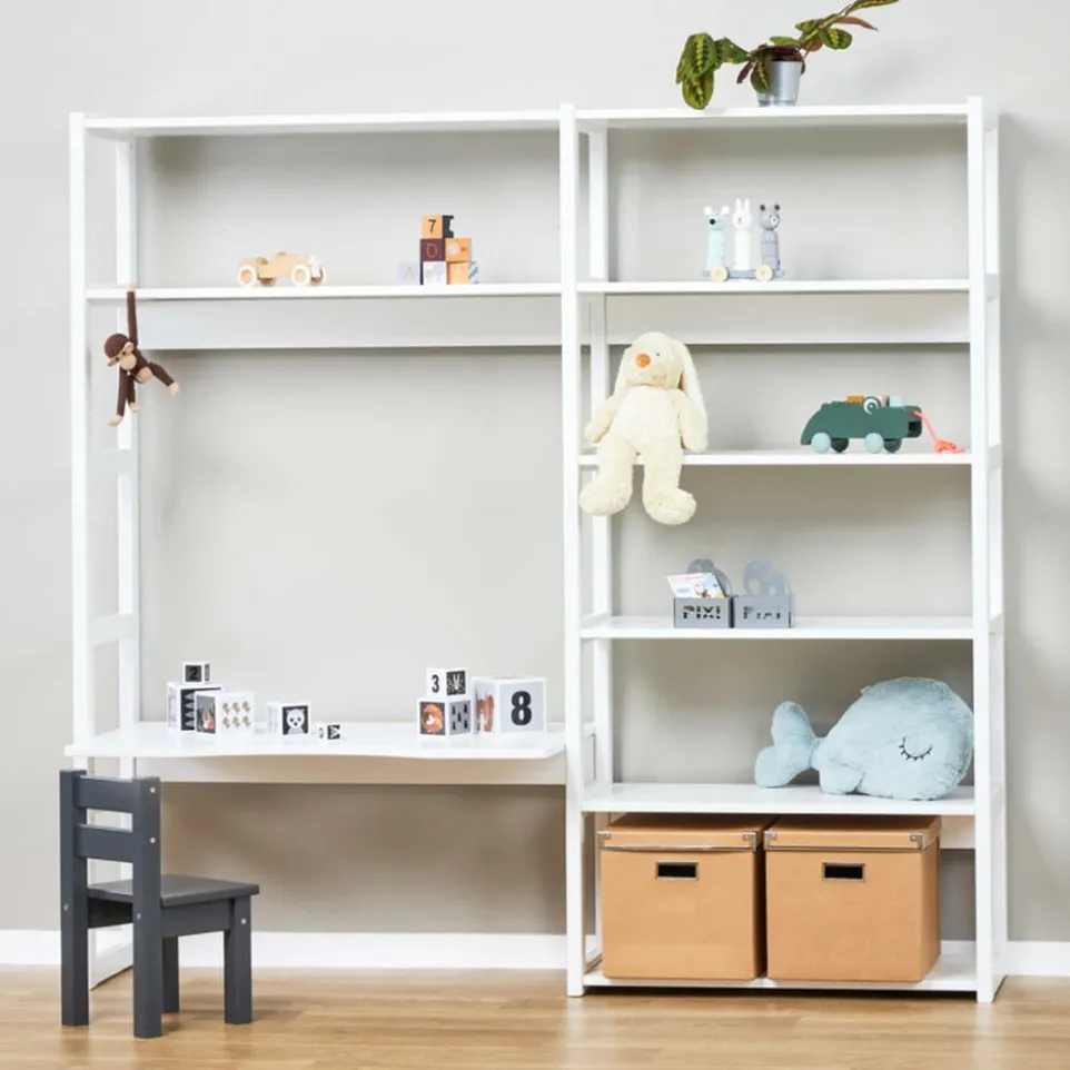 Das Regal HS-Kids von Hoppekids kombiniert stilvolles Design mit praktischen Funktionen. Gefertigt aus hochwertigem Kiefernholz, bietet es nicht nur eine natürliche Optik, sondern auch Stabilität und Langlebigkeit. Das Besondere an diesem Regal ist der integrierte Schreibtisch, der eine platzsparende Lösung für das Kinderzimmer darstellt. Mit einer Ablage ausgestattet, sorgt das Regal für Ordnung und bietet ausreichend Platz für Bücher, Spielsachen und Schulutensilien. Das robuste Material und die durchdachte Konstruktion machen das Regal HS-Kids zu einem idealen Begleiter im Kinderzimmer. Der Markenname Hoppekids steht für Qualität und durchdachtes Design.