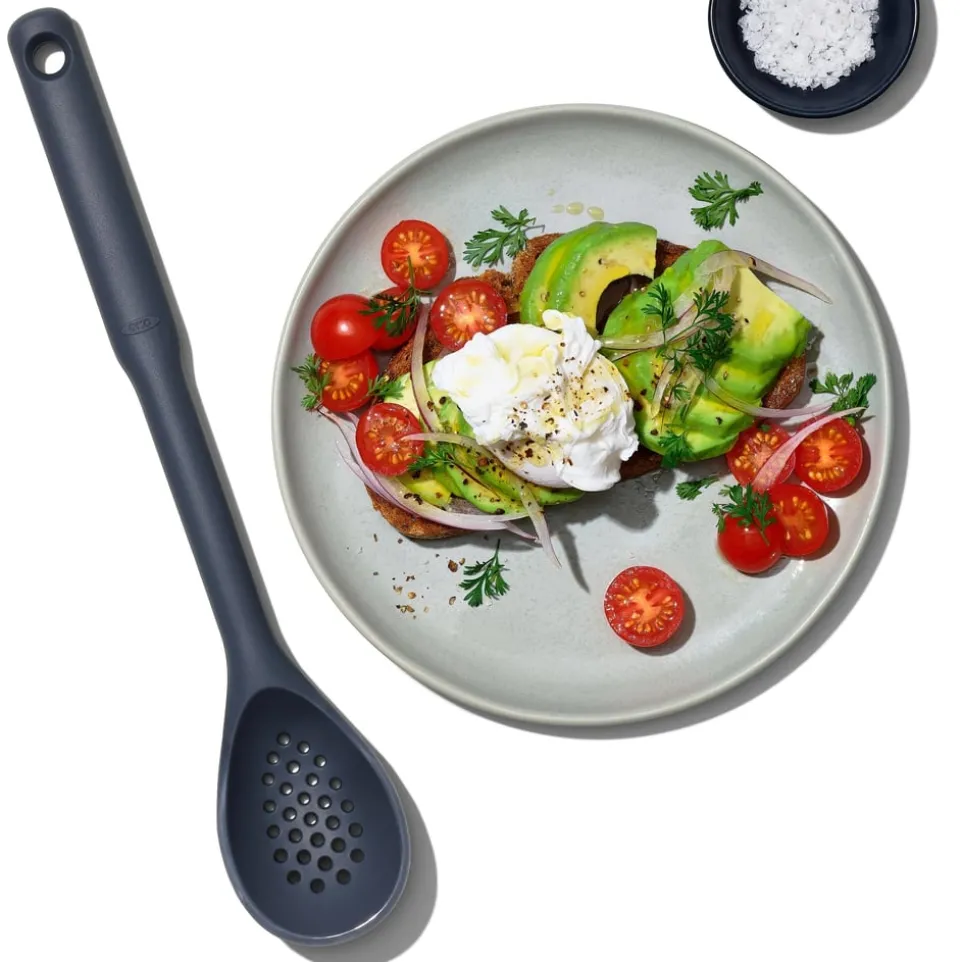 Der Schaumlöffel Good Grips von OXO überzeugt mit durchdachtem Design für deine Küche. Ergonomisch geformt, liegt er angenehm in der Hand und erleichtert das Abschöpfen von Flüssigkeiten und Fett. Dieser Küchenhelfer ist ideal, um Suppen und Saucen zu klären oder Gemüse aus dem Kochwasser zu heben. Die stabilen, breiten Schlitze ermöglichen ein effizientes Abtropfen, während der hitzebeständige Griff dir Sicherheit beim Kochen bietet. Funktionalität trifft auf Komfort, denn der Schaumlöffel ist einfach zu reinigen und langlebig. Entdecke die Qualität, die deine Kochroutine verbessert und dir den Alltag erleichtert.