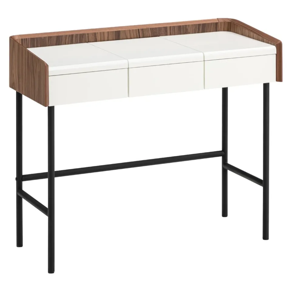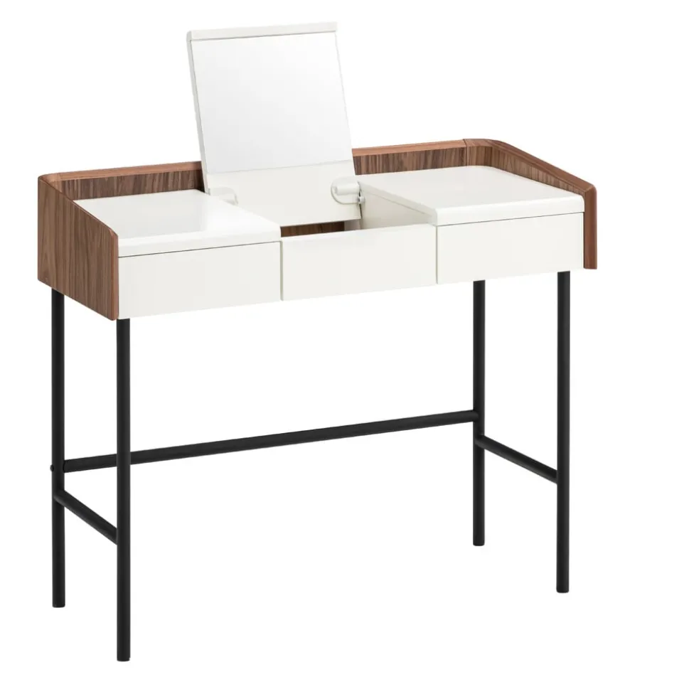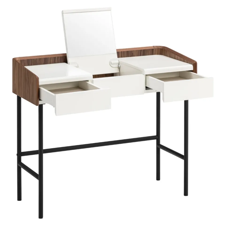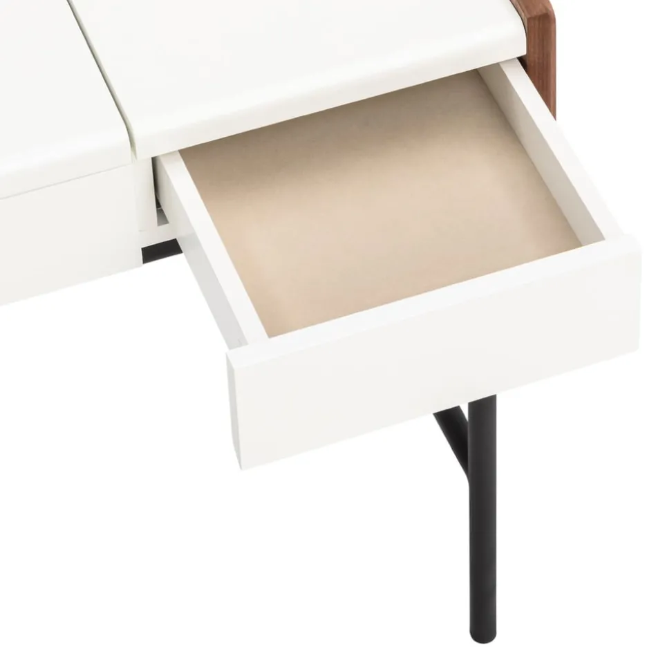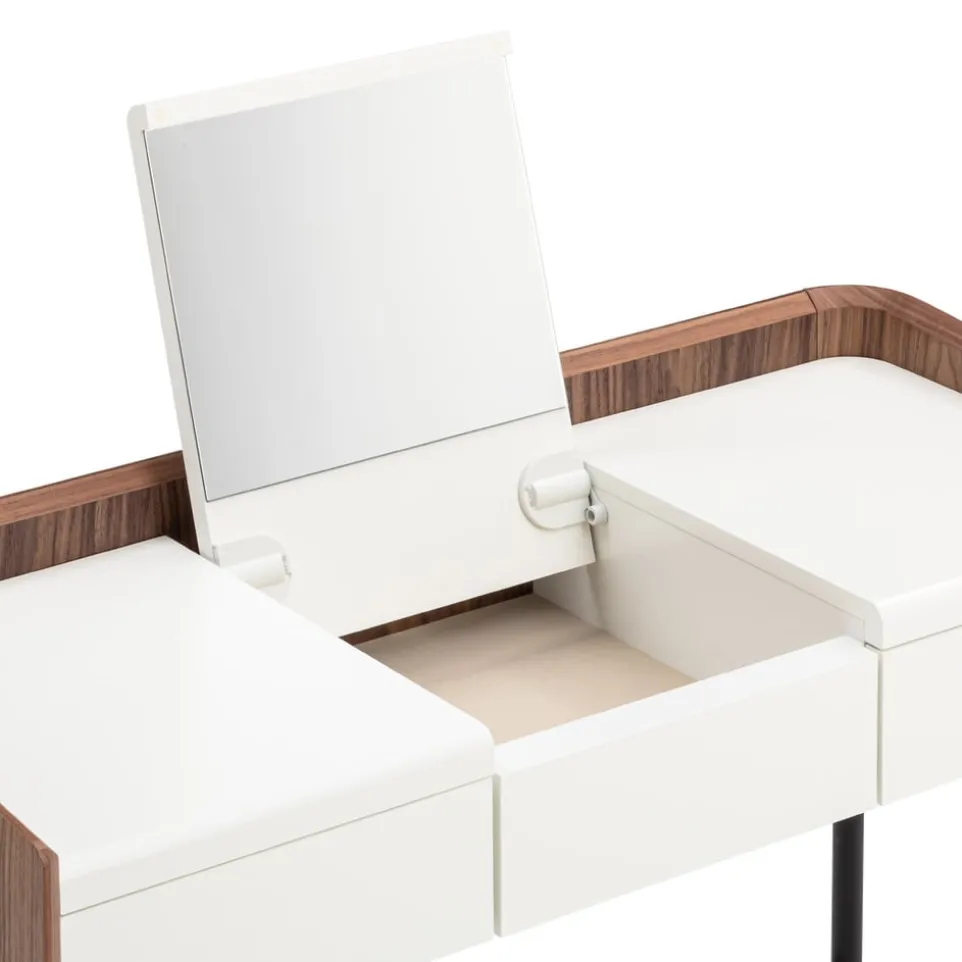 Verwandele deinen Schminkbereich in einen stilvollen Rückzugsort mit dem Schminktisch Venera von Johann Jakob. Dieser elegante Tisch besticht durch seine klappbare Funktion und die integrierte Klappe mit Spiegel, die das tägliche Styling erleichtert. Gefertigt aus hochwertigem Holzwerkstoff, fügt sich der Tisch harmonisch in jedes Ambiente ein und bietet dir gleichzeitig praktische Stauflächen für deine Schönheitsprodukte. Der Schminktisch Venera ist die perfekte Kombination aus Funktionalität und Ästhetik und ein Must-have für jeden, der Wert auf Design und Ordnung legt. Entdecke die Schönheit und Funktionalität in einem zeitlosen Möbelstück.