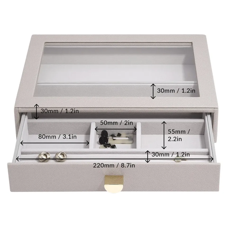 Eleganz trifft Funktionalität in der Schmuckbox Sofia aus hochwertigem Kunstleder. Dieses sorgfältig gestaltete Accessoire bietet deinem Schmuck eine stilvolle und schützende Aufbewahrung. Die feine Verarbeitung und die klare Linienführung machen die Schmuckbox Sofia von pfister zu einem perfekten Begleiter für jedes Zuhause. Durch das Kunstleder ist die Box besonders pflegeleicht und langlebig, was sie ideal für den täglichen Gebrauch macht. Ob für Ringe, Ketten oder Ohrringe – die durchdachte Aufteilung sorgt dafür, dass du stets den Überblick behältst und dein Schmuck sicher verwahrt ist.