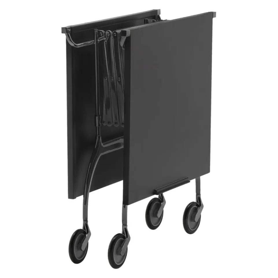 Entdecke die Vielseitigkeit des Servierwagens Battista von KARTELL, gestaltet von Antonio Citterio. Dank des robusten Kunststoffs und der stabilen Stahlstruktur eignet er sich ideal für den Einsatz in der Gastronomie und in Objekten. Seine besondere Funktionalität zeigt sich in der Möglichkeit, die Fläche individuell anzupassen: Für grössere Anlässe bietet er viel Platz, während du ihn bei Bedarf kompakt zusammenklappen kannst. Das lackierte Oberflächenfinish verleiht dem Servierwagen eine elegante Note. Wenn du einen flexiblen Begleiter für deine kulinarischen Erlebnisse suchst, ist der Battista die perfekte Wahl.