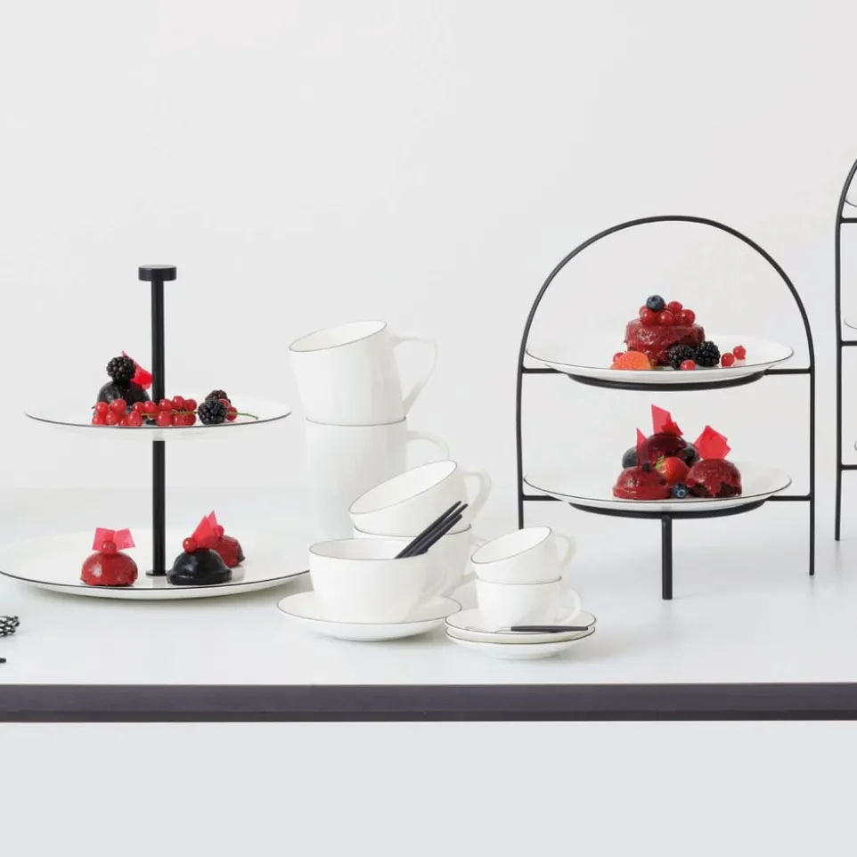 Von wegen Trauerrand. LIGNE NOIRE besticht mit dem fein nachgezogenen schwarzen Rand, der der Geschirrserie eine feine Akzentuierung verleiht.