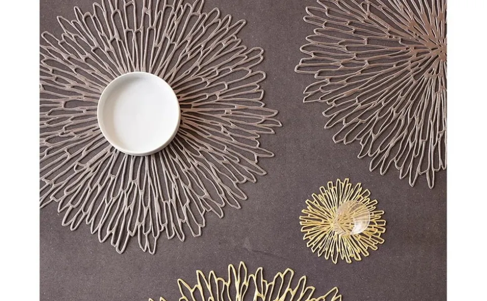 Die Tischsets BLOOM der New Yorker Designerin Sandy Chilewich machen eine zusätzliche Dekoration überflüssig. Direkt auf dem Tisch oder einem unifarbenen Tischtuch platziert, bringen die Sets Festlichkeit und Glamour ins Esszimmer. Die passenden Glasuntersetzer sind ebenfalls in unserem Onlineshop erhältlich.