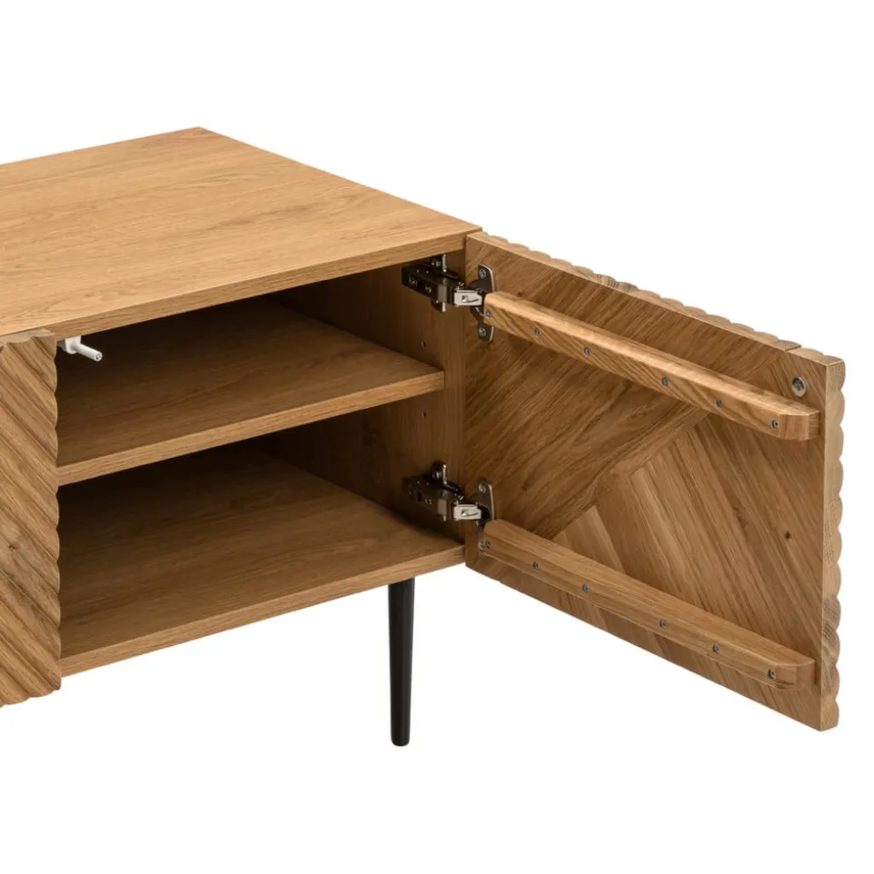 Das TV-Möbel Losna von edy&liv beeindruckt durch seine massive Eiche und die eleganten Push-out-Türen. Dieses hochwertige Möbelstück vereint Funktionalität und Design, indem es deinem Wohnzimmer eine natürliche, stilvolle Note verleiht. Die robuste Verarbeitung aus Eiche sorgt für Langlebigkeit, während das Push-out-System für ein modernes, schlichtes Erscheinungsbild sorgt. Ideal für alle, die Wert auf Qualität und Ästhetik legen. Das FSC®-Mix-Zertifikat garantiert zudem eine nachhaltige Herstellung. Verleihe deinem Zuhause mit dem TV-Möbel Losna von edy&liv ein besonderes Ambiente und schaffe Ordnung mit Stil.