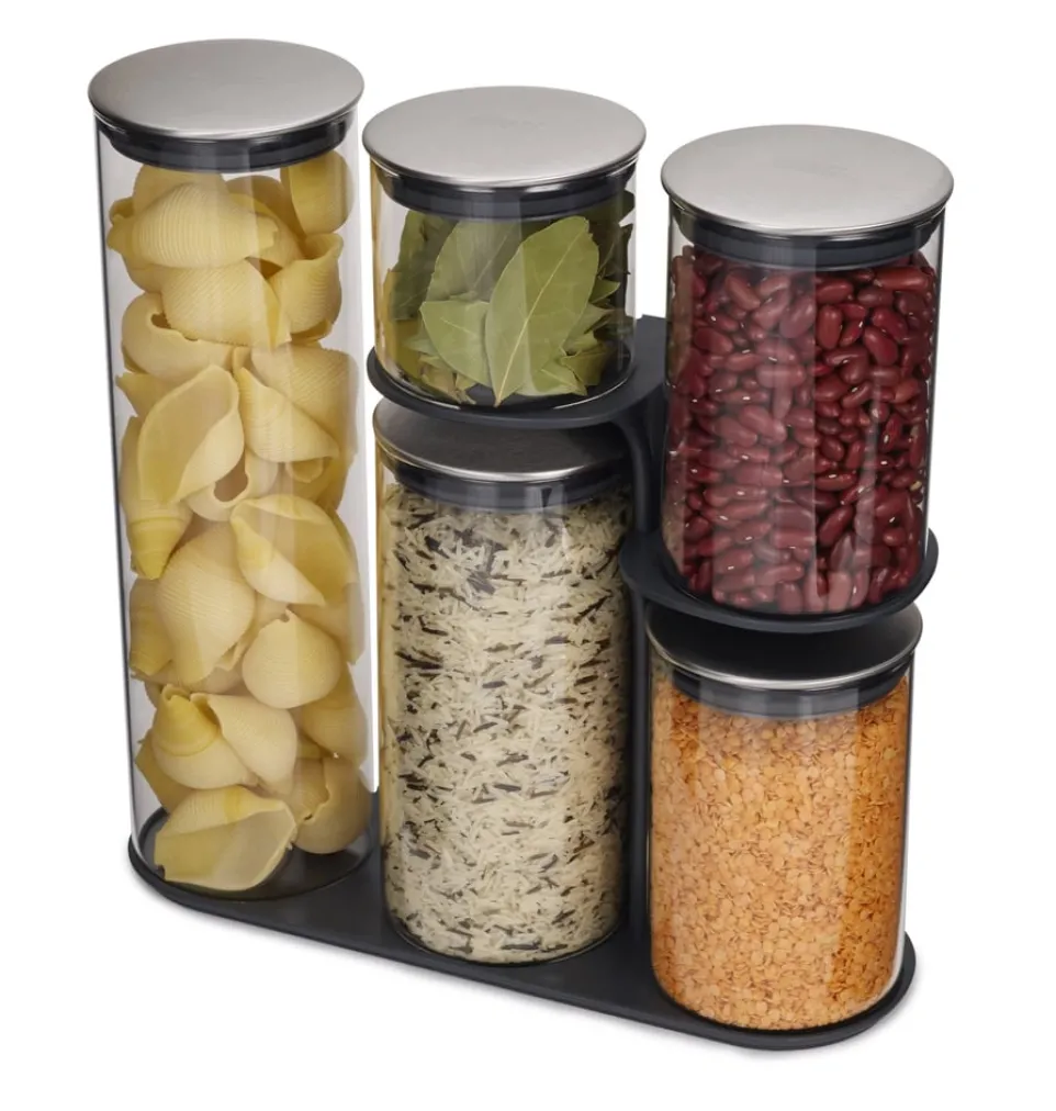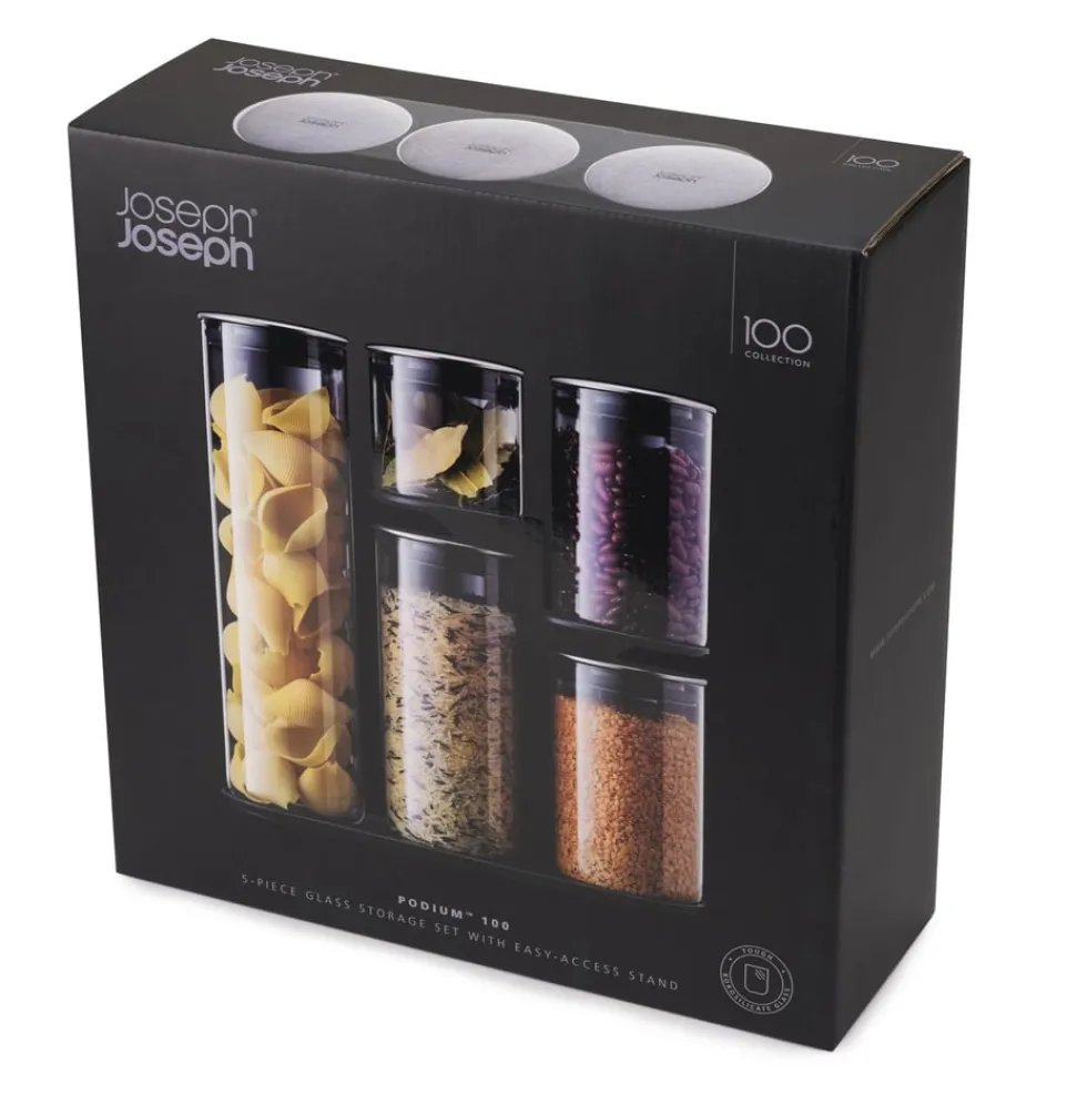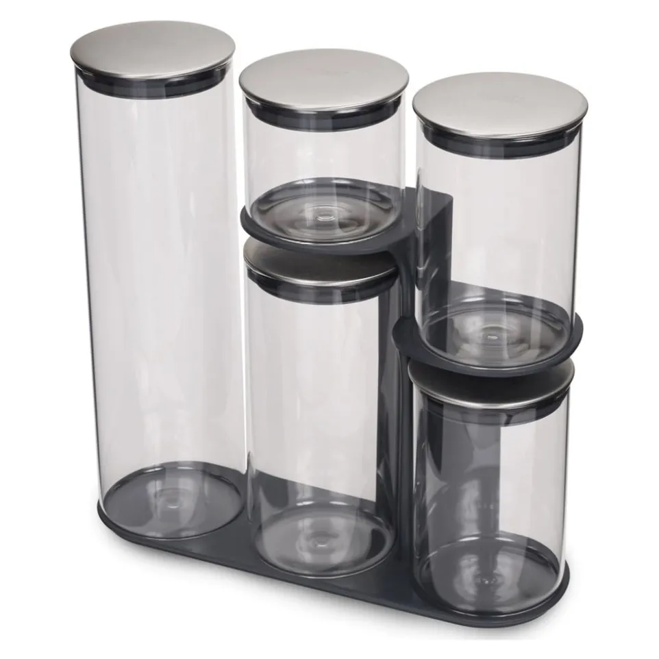 Glas als Material verleiht dem Vorratsglasset Podium von Joseph Joseph nicht nur Eleganz, sondern auch Langlebigkeit. Ideal für deine Küche, bietet dieses Set eine stilvolle Möglichkeit, trockene Lebensmittel sicher aufzubewahren. Die Vorratsgläser helfen dir, den Überblick zu behalten und sorgen für eine organisierte Umgebung. Du kannst die Gläser leicht reinigen und sie sind zudem stapelbar, was Platz in deinem Schrank spart. Das clevere Design von Joseph Joseph vereint Funktionalität und Ästhetik, sodass du deine Vorräte immer griffbereit und ansprechend präsentieren kannst. Ein praktisches und elegantes Accessoire für jeden Haushalt.