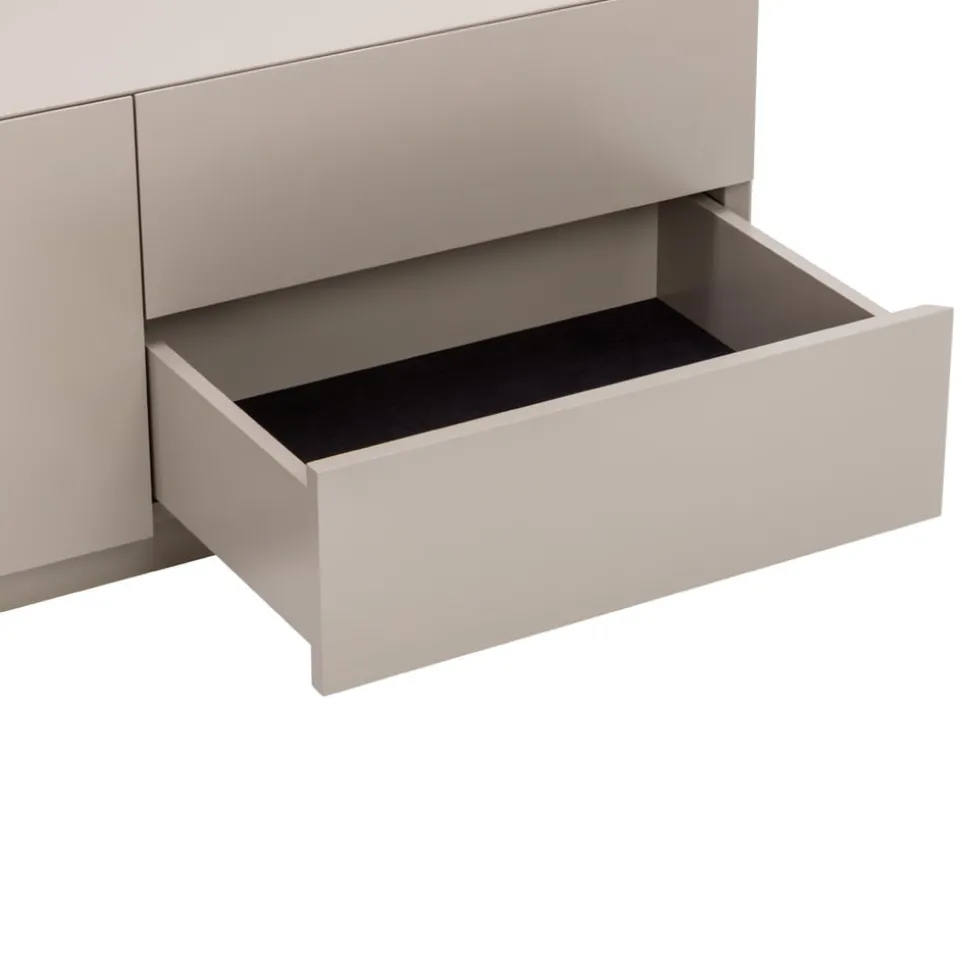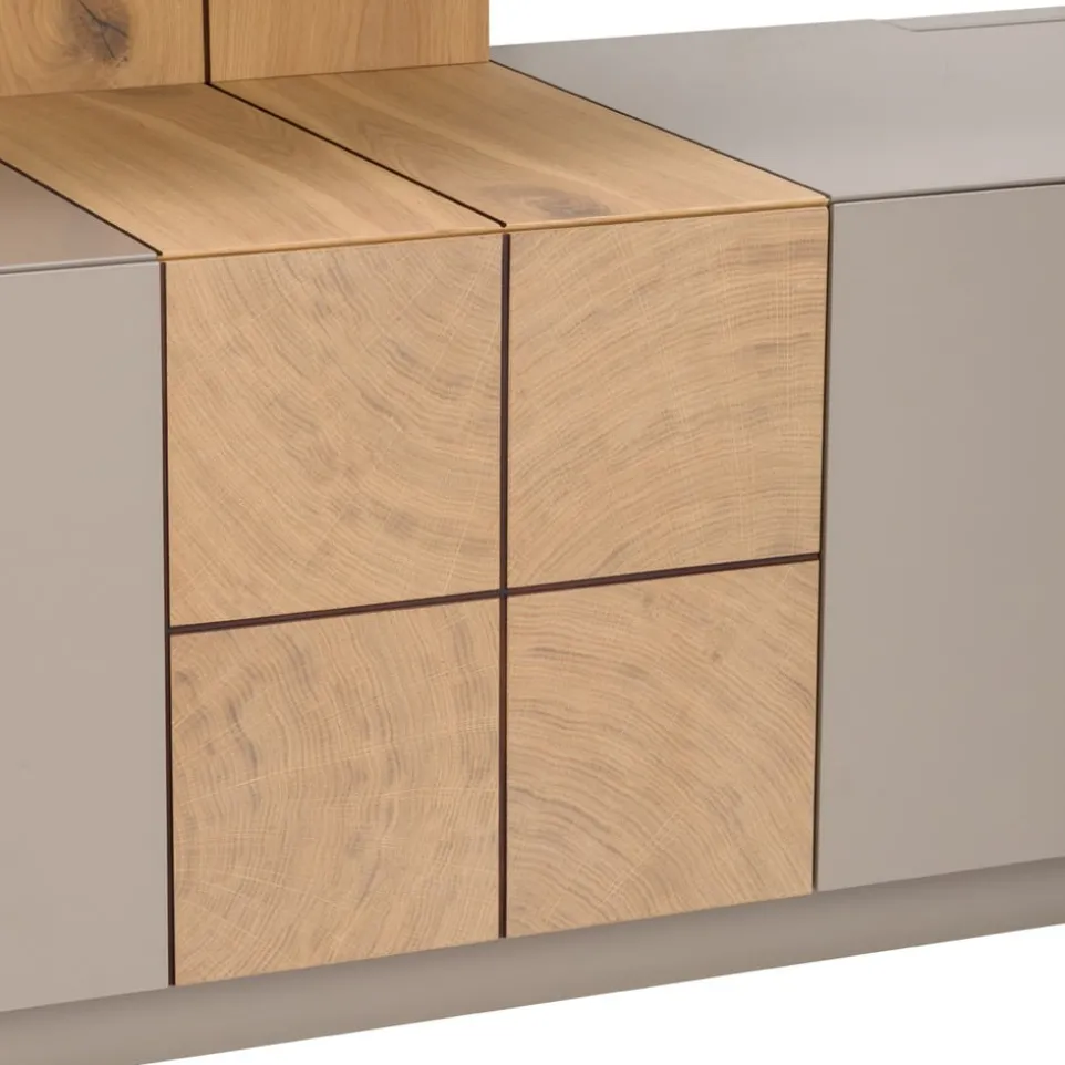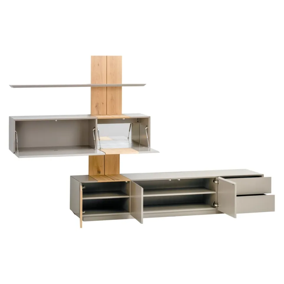 Mit der Wohnkombination Quadra von Ambiente setzt du stilvolle Akzente in deinem Zuhause. Die Kombination aus hochwertigem MDF-Holzwerkstoff und der eleganten Eiche bianco verleiht jedem Raum eine besondere Note. Ausgestattet mit fünf Türen und zwei Push-out-Schubladen, bietet sie nicht nur ausreichend Platz, sondern auch modernste Funktionalität. Die Wohnkombination Quadra überzeugt durch ihr durchdachtes Design und ihre vielseitigen Einsatzmöglichkeiten. Ganz gleich, ob im Wohnzimmer oder in anderen Wohnbereichen, sie fügt sich harmonisch ein und sorgt für Ordnung und Struktur. Lass dich von der Qualität und dem Design der Marke Ambiente inspirieren.