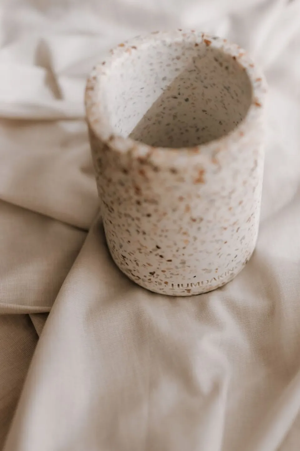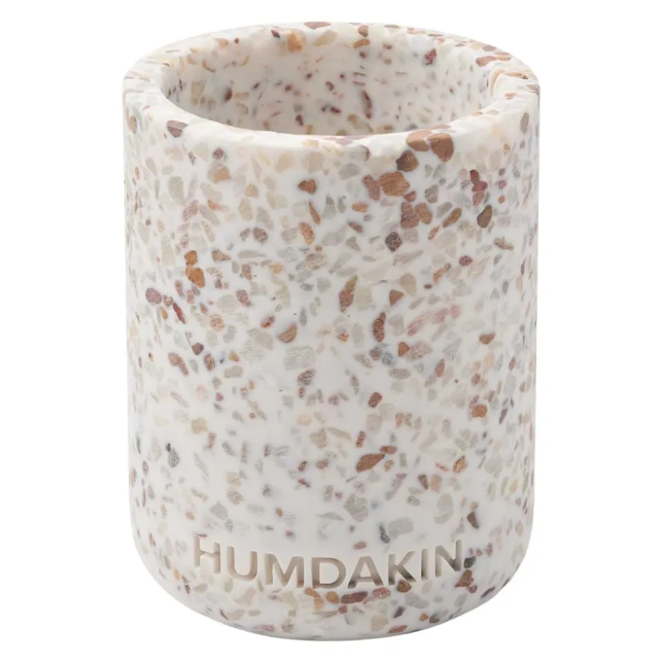 Ein charmantes Detail für dein Badezimmer ist der Zahnputzbecher Humdakin. Hergestellt aus Terrazzo, einem Material, das ursprünglich für Fussböden der 70er Jahre bekannt ist, bringt dieser Zahnbürstenhalter eine natürliche und robuste Ästhetik in deine tägliche Routine. Mit einer Höhe von etwa 10 cm passt er perfekt auf jedes Waschbecken. Der Markenname „Humdakin“ ist an der Vorderseite hochwertig eingraviert und verleiht dem Becher ein elegantes Finish. Dieser stilvolle Zahnbürstenhalter vereint Funktionalität und Design, um deinem Bad eine besondere Note zu verleihen.