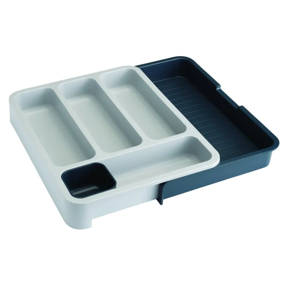 Wie so oft bei JOSEPH JOSEPH, steckt auch in dieser Besteckbox ein wenig mehr, als auf den ersten Blick ersichtlich ist. Sie ist ausziehbar und passt sich so der Grösse der Schublade und Ihrer Besteck-Kollektion flexibel an. Die Benefits auf einen Blick: verschieden grosse Behälter, hohe Zwischenwände, spülmaschinengeeignet und in frischer Farbkombination.