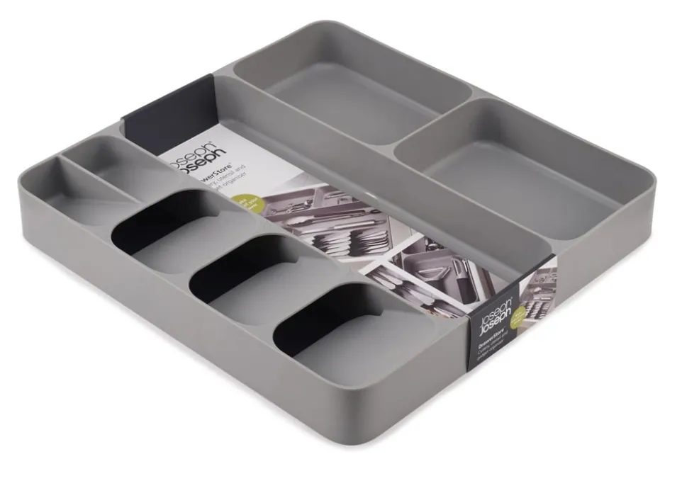 Perfekte Organisation für deine Küchenschublade bietet der Besteckeinsatz Drawerstore von Joseph Joseph. Aus robustem Kunststoff gefertigt, sorgt dieser innovative Einsatz dafür, dass Messer, Gabeln und Löffel stets griffbereit sind. Mit durchdachtem Design maximiert er den Stauraum und schafft Ordnung in jedem Schubfach. Der Drawerstore ist nicht nur funktional, sondern auch ein eleganter Helfer im Alltag. Joseph Joseph hat hiermit ein Produkt entwickelt, das sowohl in kleinen als auch grossen Küchen optimal eingesetzt werden kann. Entdecke, wie einfach es ist, mit diesem Besteckeinsatz den Überblick zu behalten.