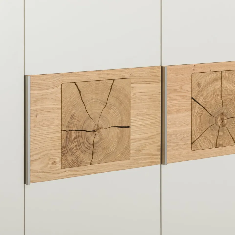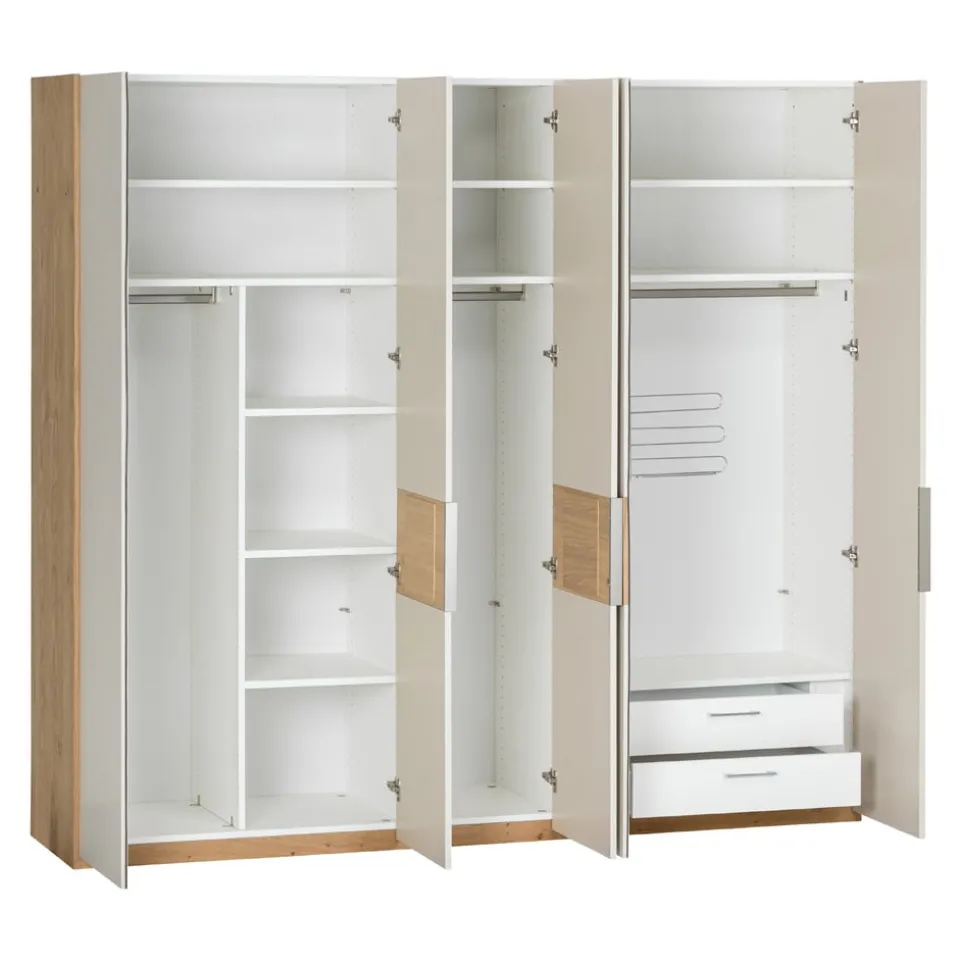 Du musst mit diesem Drehtürenschrank keine Gedanken mehr an die Frage verschwenden, wo du deine Kleidung verstaust. Lass dich von der erstklassigen Qualität und dem tollen Design der Marke Dieter Knoll begeistern. Der Schrank erweitert mit seinen fünf Türen deinen Stauraum und macht in seinem klassischen Stil eine hervorragende Figur. Das Möbelstück in der Farbe Eiche verfügt über ästhetische mattnickelfarbene Griffe aus Metall. Für eine hervorragende Verarbeitungsqualität steht das Label „Made in Germany“. Du schaffst mit diesem Schrank zusätzliche Verstaumöglichkeiten.