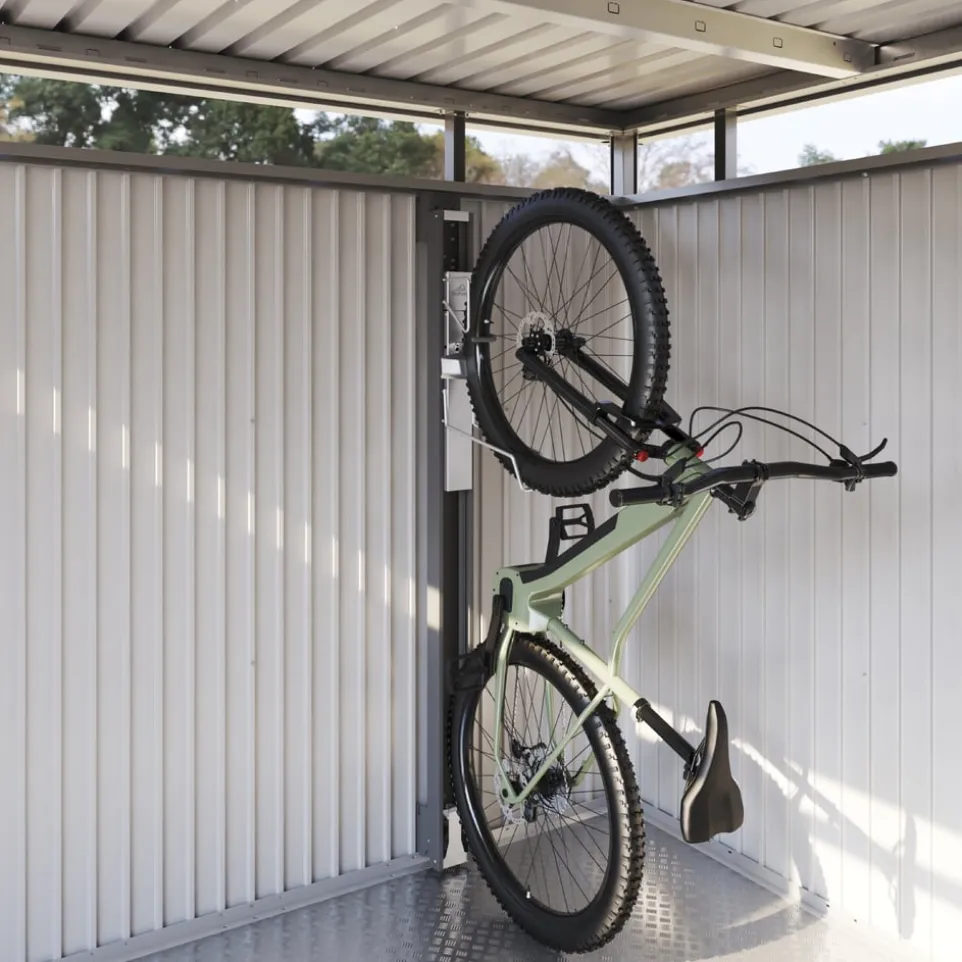 Die Fahrradaufhängung Bikelift von Biohort beeindruckt mit ihrer schwenkbaren Konstruktion und der praktischen Liftfunktion, die durch starke Federkraft unterstützt wird. Diese innovative Lösung aus robustem Metall eignet sich perfekt für Fahrräder mit einer Reifenhöhe und -breite von bis zu 77 mm sowie einem vorderen Reifenaussendurchmesser von bis zu 74 cm. Der Bikelift sorgt dafür, dass dein Fahrrad sicher und platzsparend aufbewahrt wird. Diese Aufhängung ist ideal, um deine Fahrräder geordnet und griffbereit zu halten, während wertvoller Platz in deiner Garage oder deinem Abstellraum frei bleibt. Entdecke die Qualität und Funktionalität von Biohort.Bitte beachten Sie, dass bei einer Heimlieferung ohne Montageservice die Lieferung lediglich bis zur Bordsteinkante erfolgt.