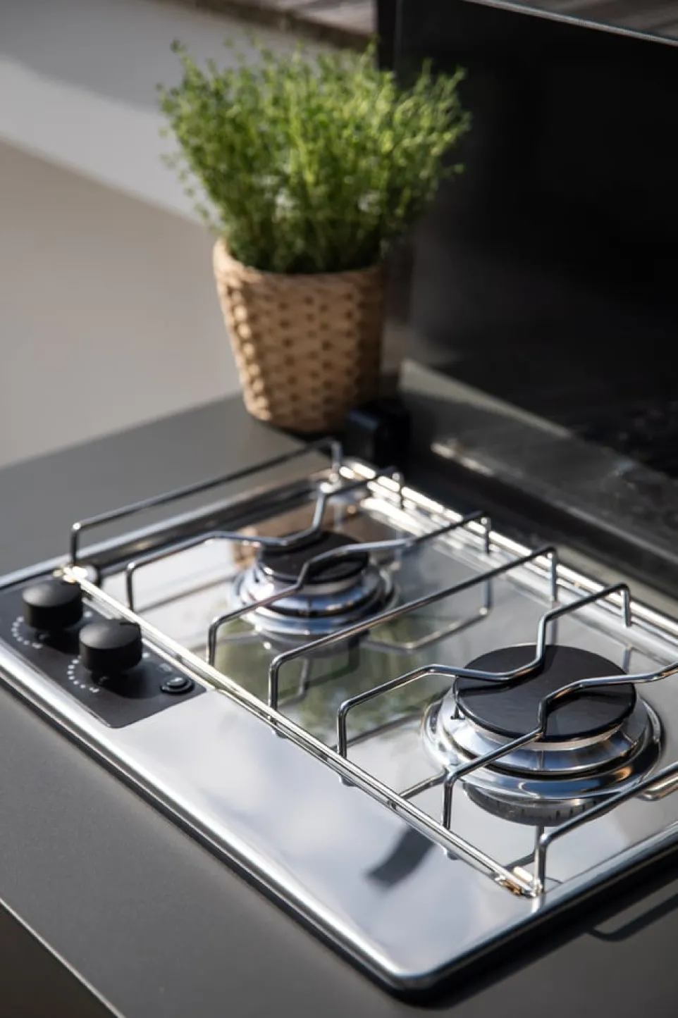 | Ausstattung | 1 Türe, 1 Spritzschutz, Gas, 2 Kochfelder, 425 kW |