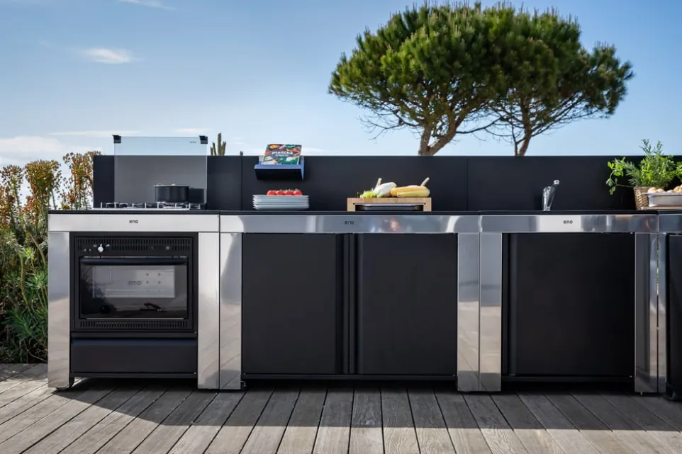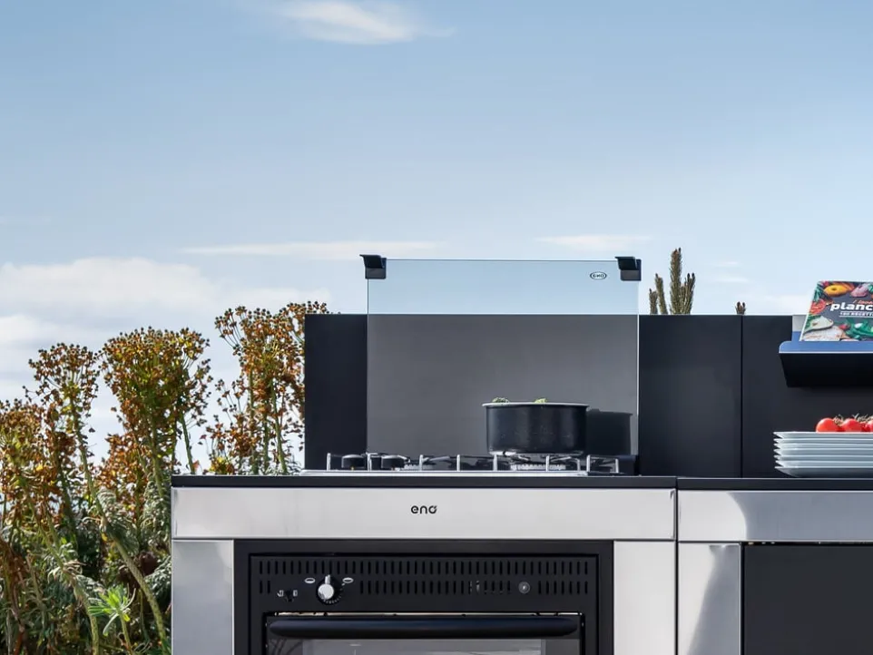 Das wetterfeste Kochmodul Eno Master von ENO Planchas verleiht deinem Aussenbereich eine neue Dimension des Kochens. Mit seinen zwei leistungsstarken Kochfeldern und einer beeindruckenden Leistung von 425 kW sorgt das Gas-Kochmodul für kulinarische Vielfalt. Die robuste Stahlkonstruktion ist nicht nur lackiert, sondern auch verzinkt, um maximalen Schutz gegen Witterungseinflüsse zu gewährleisten. Dank UV-beständiger Farbe bleibt das Modul auch bei intensiver Sonneneinstrahlung ansehnlich. Die Ausstattung umfasst eine Tür und einen praktischen Spritzschutz, die für zusätzlichen Komfort sorgen. Geniesse die Freiheit, im Freien zu kochen, wann immer du möchtest.