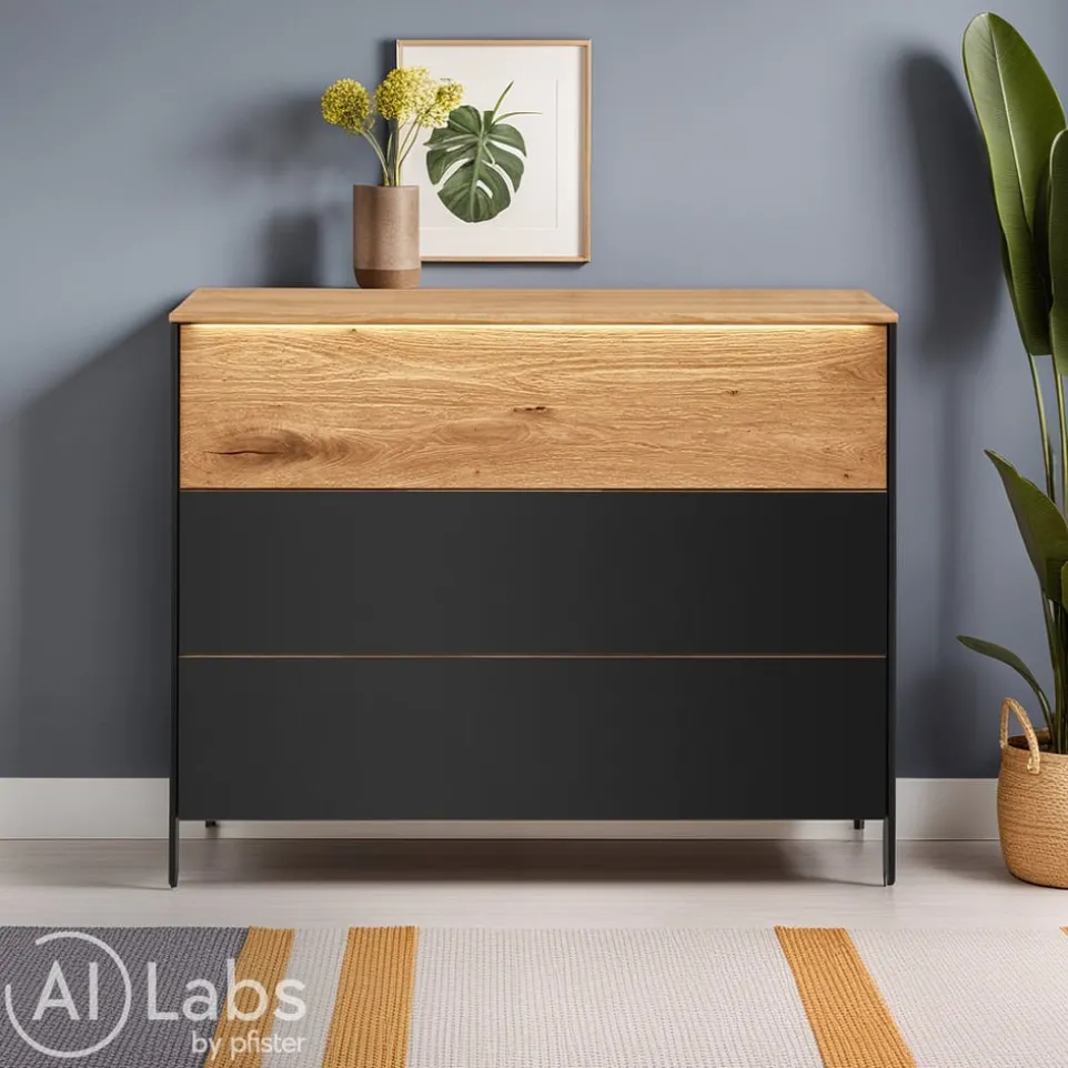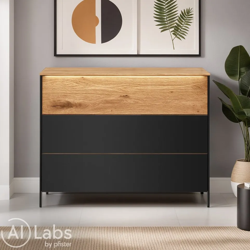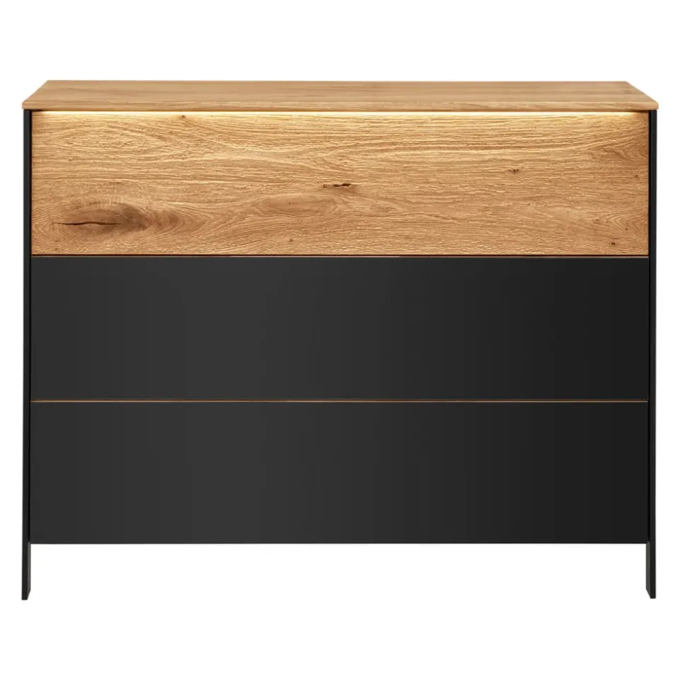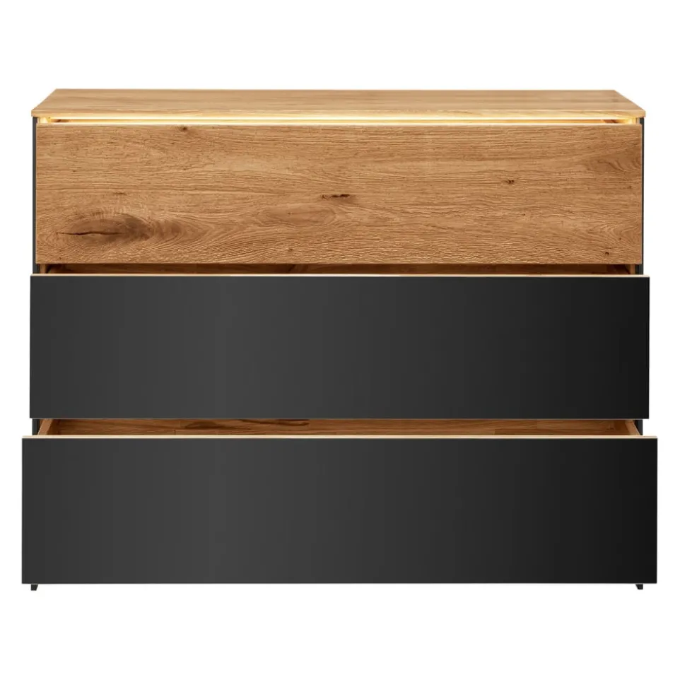Die Kommode Boston_201 von BYYU beeindruckt mit ihrer hochwertigen Wildeiche und integriertem LED-Beleuchtungssystem. Mit drei geräumigen Schubladen bietet sie viel Stauraum für deine Habseligkeiten. Das edle Holzmaterial verleiht jedem Raum eine natürliche und zugleich elegante Atmosphäre. Sie passt perfekt in verschiedene Wohnstile und setzt ein stilvolles Highlight. Die praktische LED-Beleuchtung sorgt für eine moderne Akzentuierung und bringt deine Lieblingsstücke optimal zur Geltung. Die Kommode Boston_201 ist nicht nur ein funktionales Möbelstück, sondern auch ein echter Blickfang in deinem Zuhause. Hol dir diese elegante Kommode und bereichere deinen Wohnraum.
