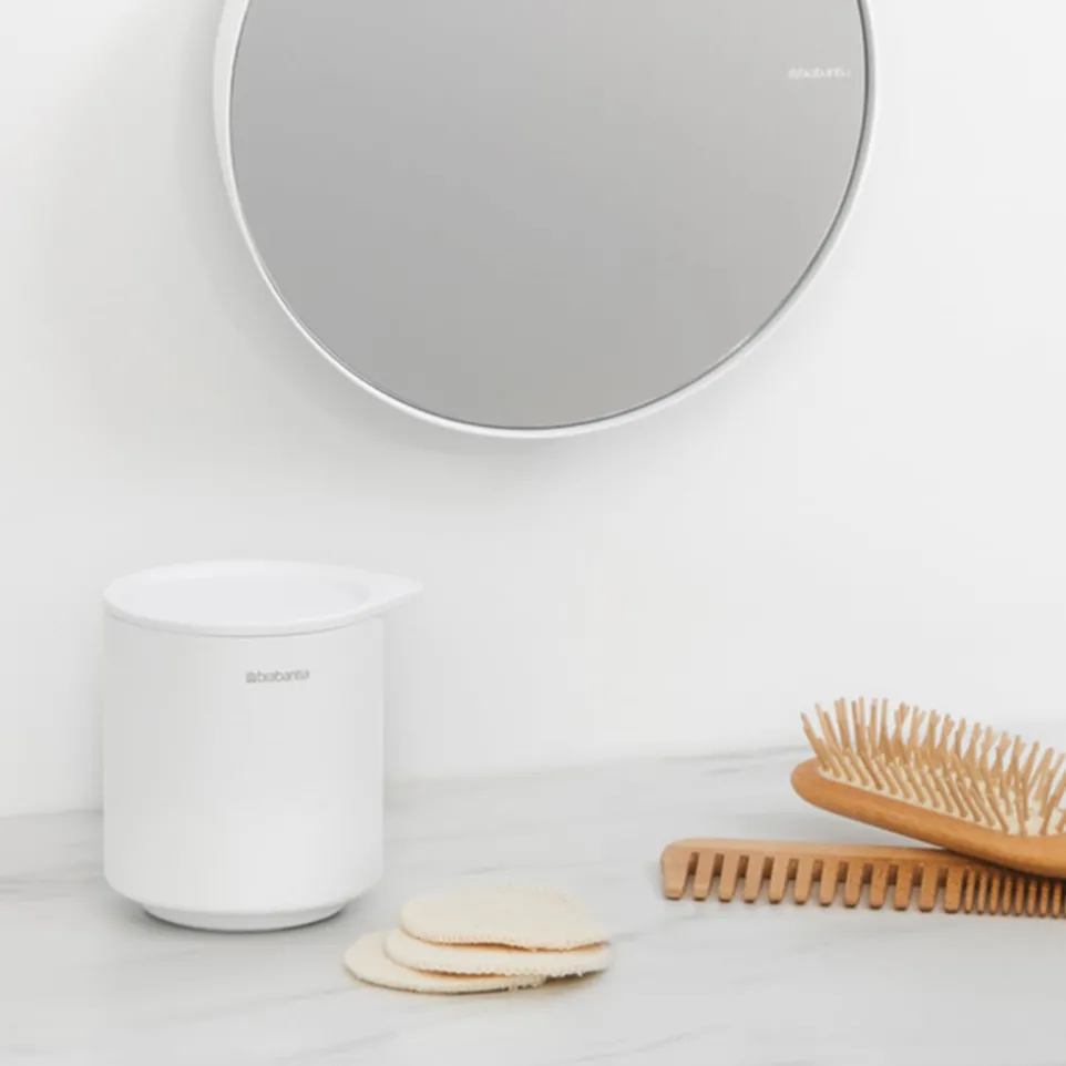 Erlebe die beeindruckende 5-fache Vergrösserung des Kosmetikspiegels Mindset von BRABANTIA, ideal für eine präzise Rasur oder das perfekte Make-up. Dieser runde Spiegel aus Kunststoff lässt sich dank seiner praktischen Magnethalterung einfach abnehmen und flexibel bewegen, um deine Schokoladenseite zu finden. Gestalte dein Badezimmer mit der modernen Mineralbeschichtung und geniesse die Vorteile rostbeständiger Materialien, die ihn ideal für Feuchträume machen. Während die Wandhalterung die Montage erleichtert, ist es wichtig zu beachten, dass er nicht in der Dusche montiert werden sollte. Nachhaltigkeit wird durch den Einsatz von recyceltem Material unterstützt.
