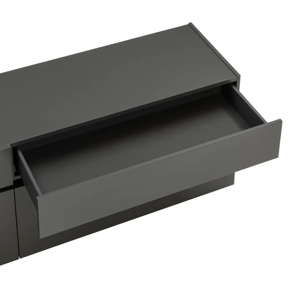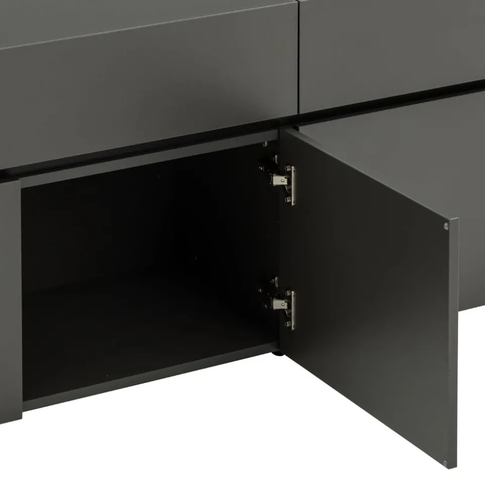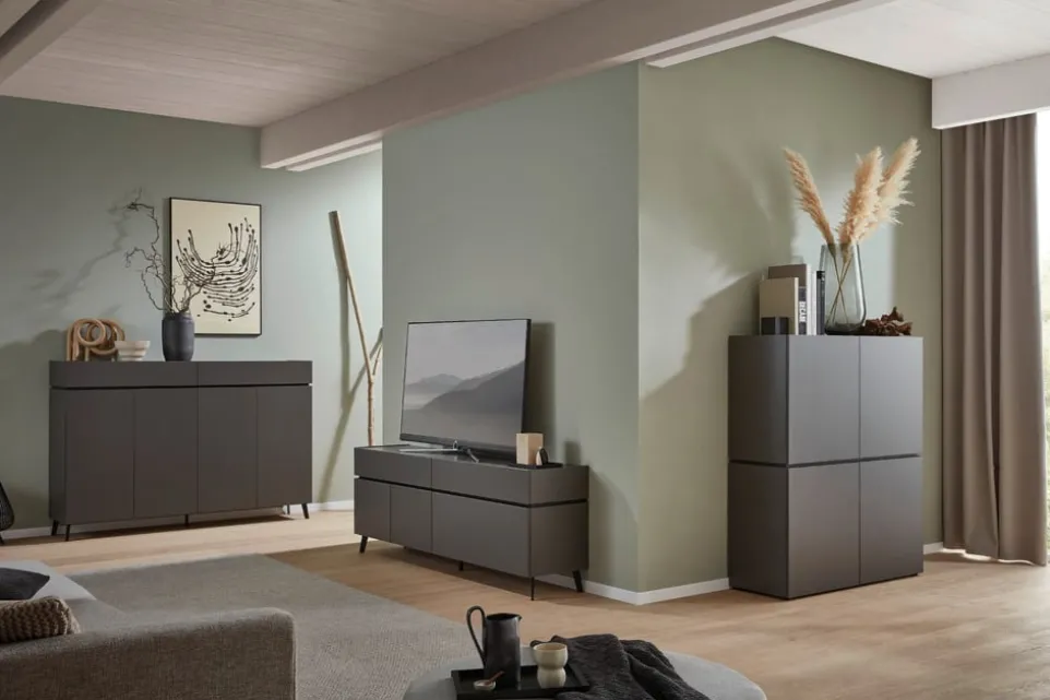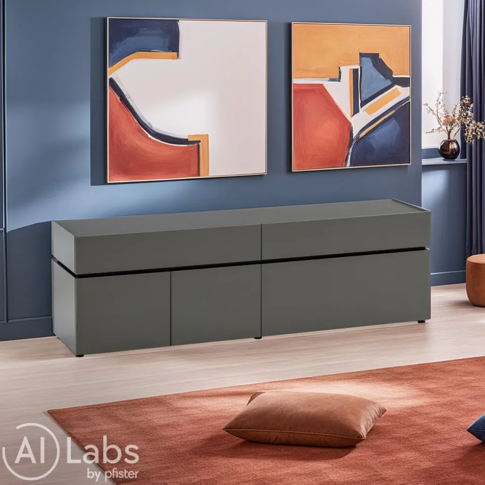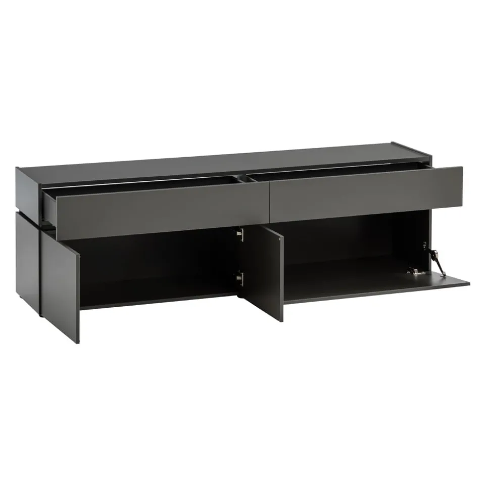 Das Lowboard Unique von Voleo beeindruckt mit seiner eleganten Schlichtheit und Funktionalität. Gefertigt aus hochwertigem Holzwerkstoff, speziell aus Flachpressplatte, bietet es eine robuste und langlebige Konstruktion. Mit zwei Türen und zwei Schubladen sorgt es für ausreichend Stauraum und eine klare Ordnung in deinem Wohnzimmer. Die minimalistische Gestaltung fügt sich nahtlos in jede Einrichtung ein und schafft eine harmonische Atmosphäre. Die Kastenmöbelart des Lowboards verleiht deinem Raum einen modernen und stilvollen Akzent. Optimiere deinen Wohnbereich mit dem Lowboard Unique und geniesse die ideale Kombination aus Ästhetik und Praktikabilität.