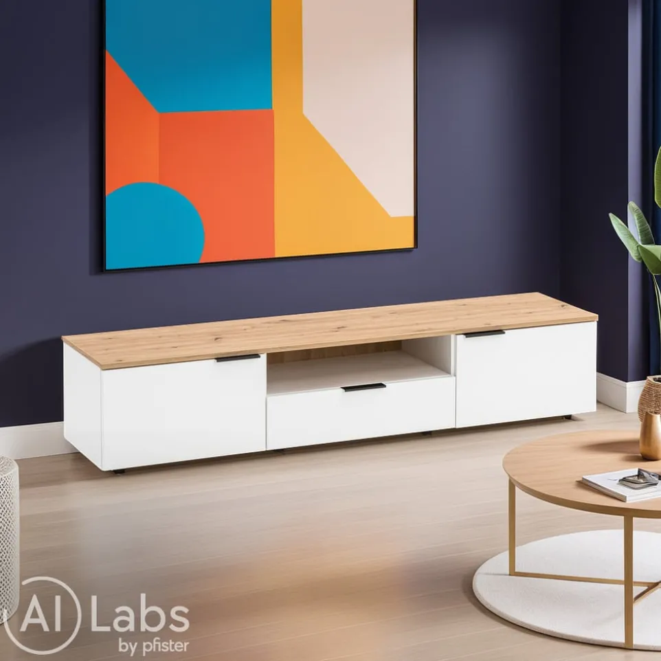 Das Lowboard Weber von one besticht durch seine elegante Verarbeitung aus hochwertigem Holzwerkstoff. Die robuste Spanplatte sorgt für Stabilität und Langlebigkeit, während die Kunststoffgleiter dir das mühelose Verschieben des Möbels ermöglichen. Als stilvolles Kastenmöbel fügt sich das Lowboard harmonisch in jedes Wohnambiente ein und bietet ausreichend Stauraum für deine Multimedia-Geräte und andere Gegenstände. Dank seiner durchdachten Konstruktion ist es sowohl funktional als auch ästhetisch ansprechend. Mit dem Lowboard Weber schaffst du eine perfekte Kombination aus Design und Praktikabilität in deinem Wohnzimmer.