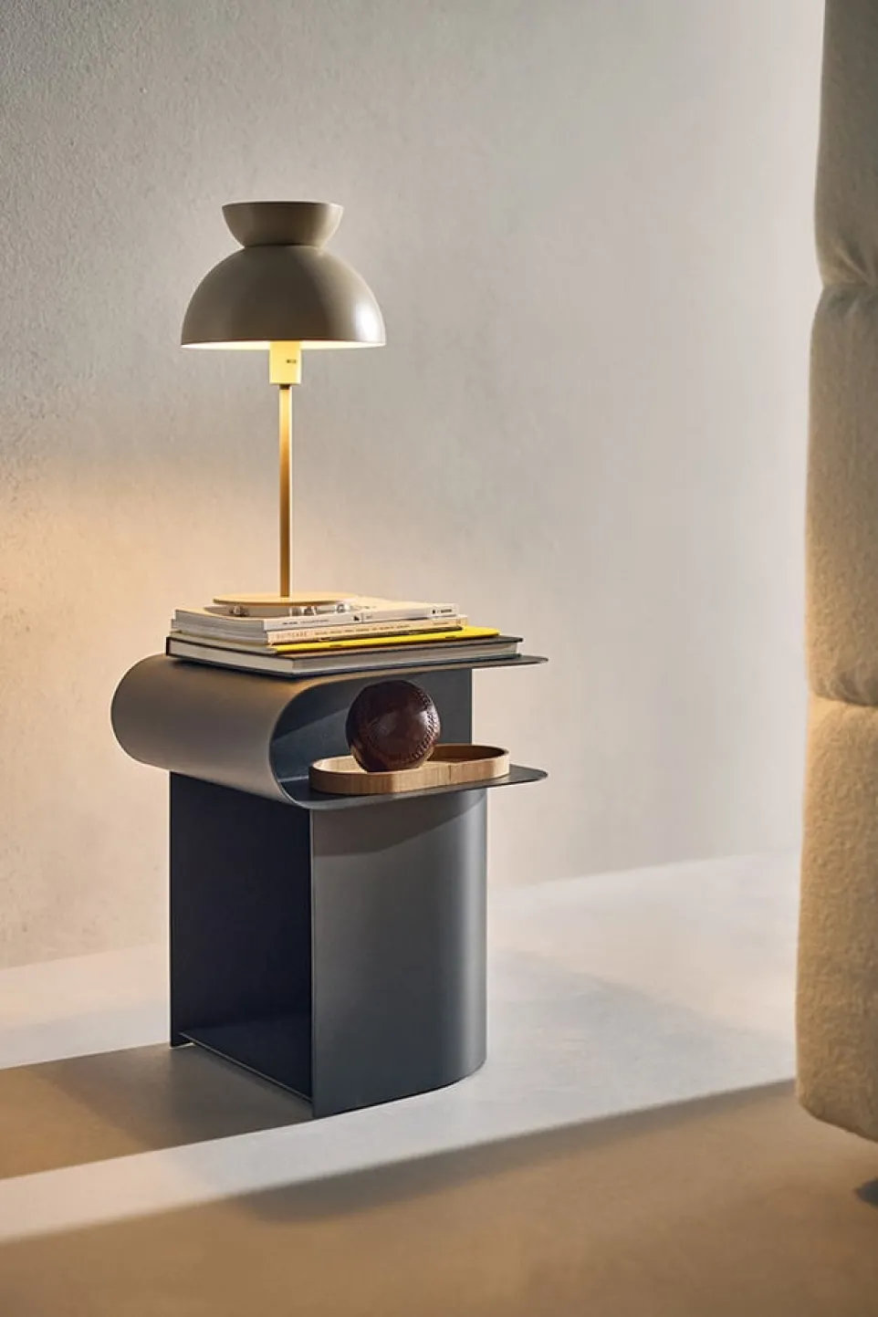 Riex – Klarheit in Form gebracht. Benannt nach dem Waadtländer Dorf, steht der Nachttisch Riex von atelier pfister für reduziertes Design mit Charakter. Aus pulverbeschichtetem Eisen gefertigt, überzeugt er mit einer klaren, fein gezeichneten Silhouette, die Leichtigkeit und Ordnung ins Schlafzimmer bringt. Die offene Ablage bietet Platz für Bücher, Gadgets oder eine Leuchte – funktional, pur und stilsicher.Riex ist das perfekte Statement für alle, die minimalistisches Design mit durchdachter Gestaltung und zeitloser Ästhetik verbinden wollen. Der Nachttisch ist in mehreren Ausführungen erhältlich.