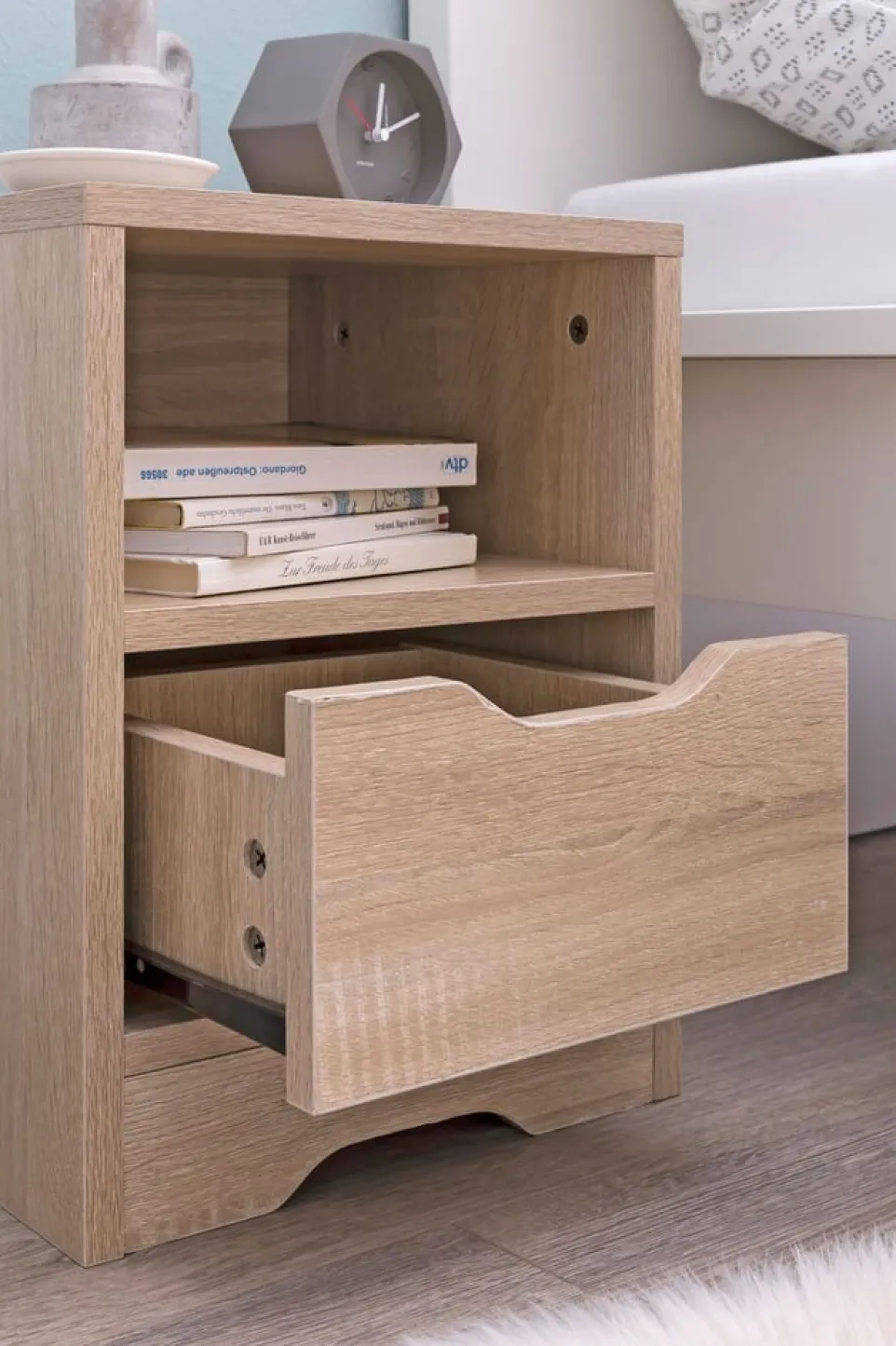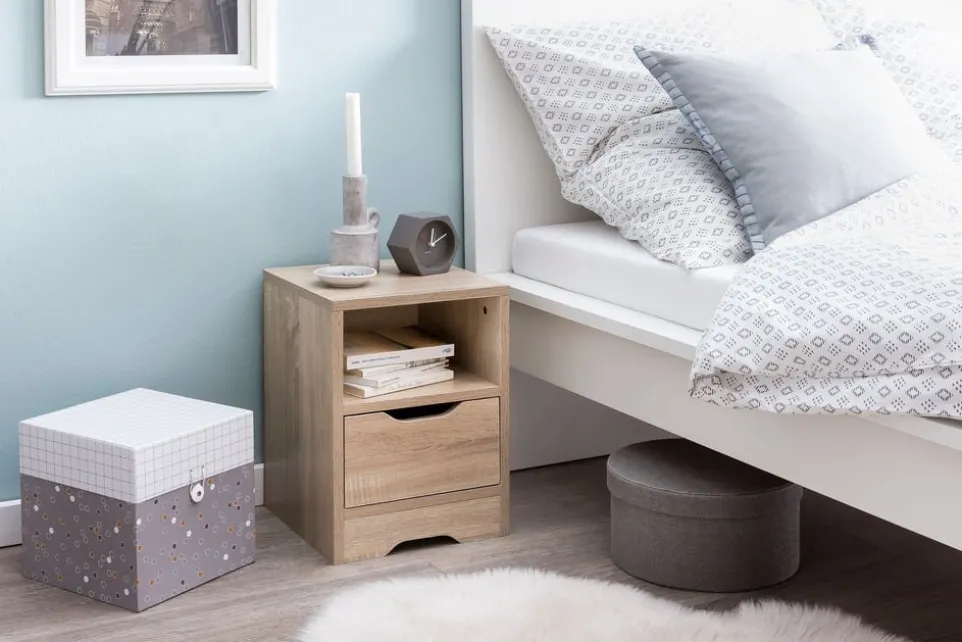 Ein stilvoller Begleiter für dein Schlafzimmer ist der Nachttisch Sonoma von MID.YOU. Gefertigt aus hochwertiger Spanplatte, bietet er eine robuste und langlebige Struktur. Die praktische Schublade bietet dir ausreichend Platz, um deine persönlichen Gegenstände sicher zu verstauen und in Reichweite zu halten. Als Kastenmöbel passt er sich ideal an und bleibt ein unaufdringliches Element in deinem Raum. Durch das durchdachte Design ist der Nachttisch Sonoma nicht nur funktional, sondern auch eine Bereicherung für dein Ambiente. Lass dich von der Kombination aus Qualität und Ästhetik überzeugen.