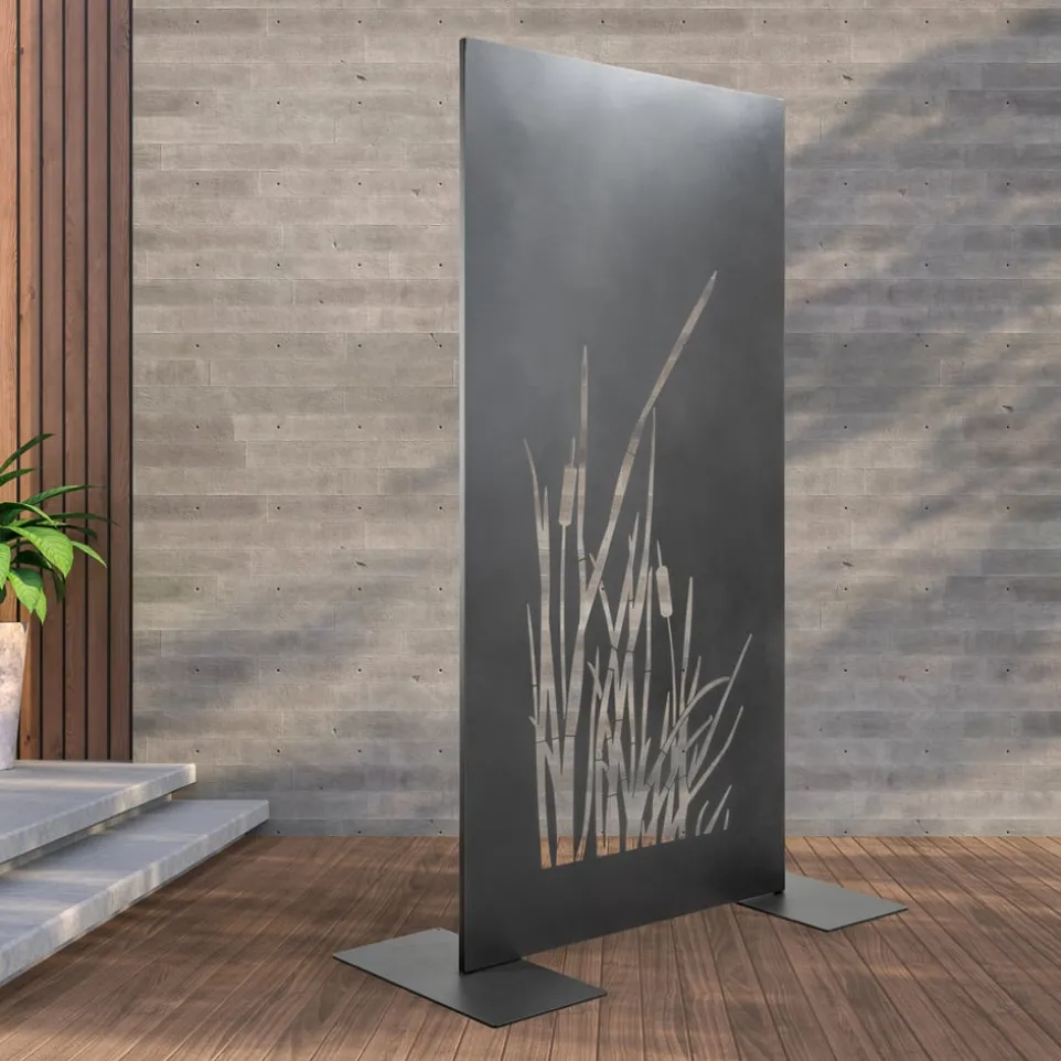 Der Paravent TYPHA von Nouvel kann als Trennwand verwendet werden, um Räume zu unterteilen und Bereiche abzuschirmen, wodurch Privatsphäre und Intimität geschaffen werden. Ob im Wohnzimmer, im Büro,im Garten oder als Hintergrund für Fotos, der Paravent ist auch ein ästhetisches Statement und ein dekoratives Element. Aus beschichtetem Stahl gefertigt. Für den Aussenbereich geeignet. Die Platten für eine temporäre Montage sowie Stäbe für eine fixe Montage sind separat erhältlich. Bei einer Montage im Aussenbereich die örtlichen Bauvorschriften beachten.